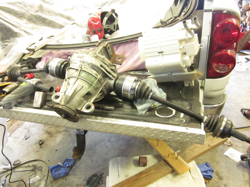 After that I have decided to move back outside of the car for a while, needed to get my differential mounted so that I could measure for my driveshaft. Obviously it won't be much different than any of yours, but I still need to do it.