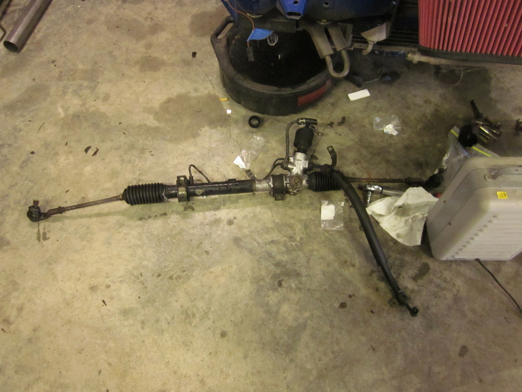 Now if you watch the classifieds section, you know that my silver NB parts car is now gone, and I have a 91 BRG on the table now. Once again if you remember from earlier posts, my V8R subframe actually came from a NA build that didn't happen, and the only difference is the way the steering rack mounts. Went ahead and got the NA rack cleaned up and installed in my car. I will be putting in new tie rods before I am done, but I wanted to get this in so I could get he steering column in.