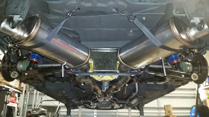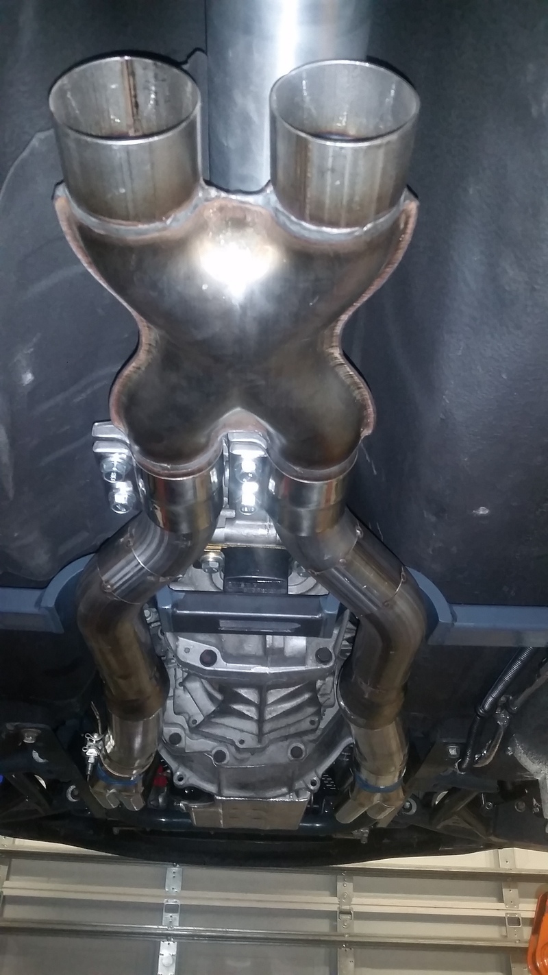 [/IMG]Ive finished the front half of the exhaust, still havnt decided on mufflers yet. So many choices. I really like the dual in/dual out that FM has on their system for ease of routing. But I also think that 2 seperate mufflers will be quieter.