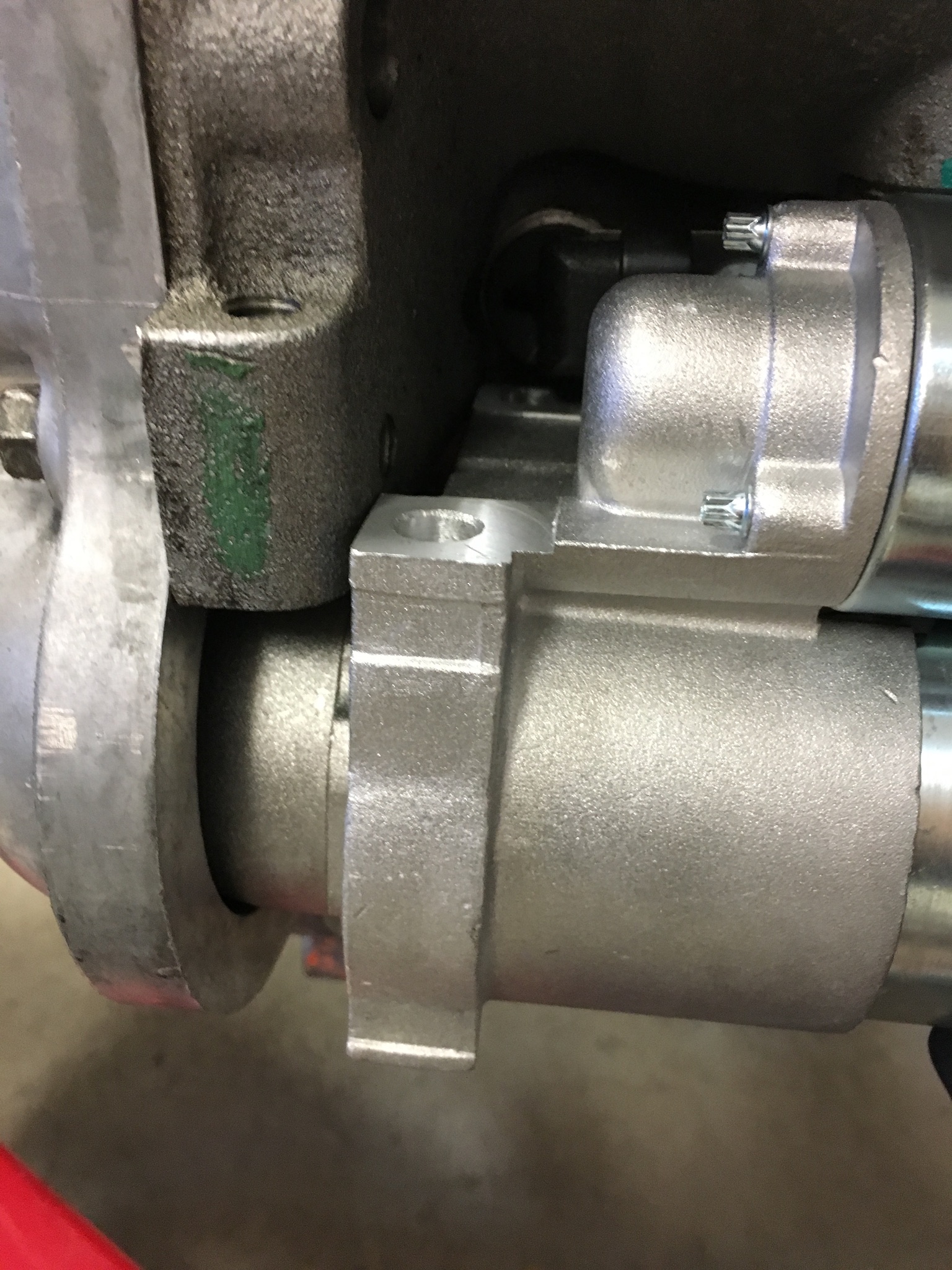 Coming along nicely. Ready to put engine and trans in today. I did hit one snag though. I ordered a starter from Pace Performance that was listed for LS1, 2, 6, etc. when I went to put it on, I found that the mounting pad is too tall. I bought my bellhousing used and it had GTO written in paint marker on it. Not sure if the GTO and Fbody bellhousings were different or if I simply got the wrong starter.