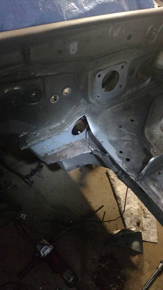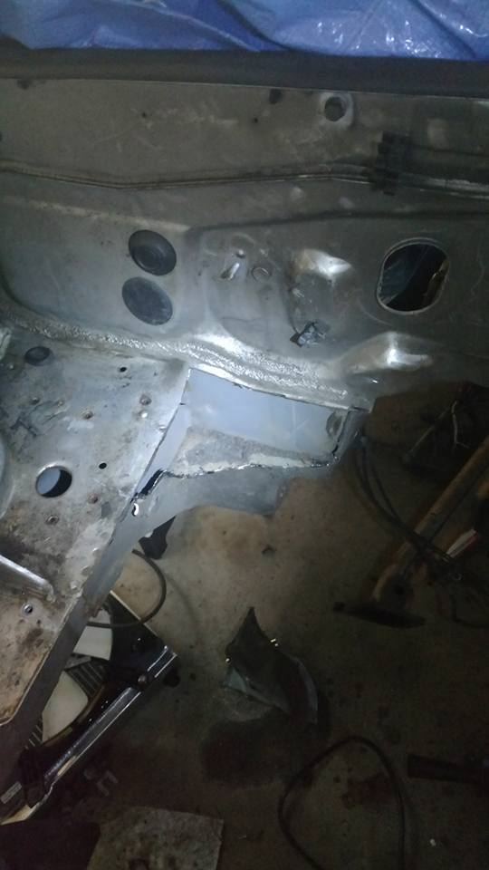 I pulled the motor out, got it out of the garage to pressure wash the engine bay, and weld up the transmission tunnel. Hopefully I'll get around to seam sealing the bay tomorrow so I can prepare for paint.