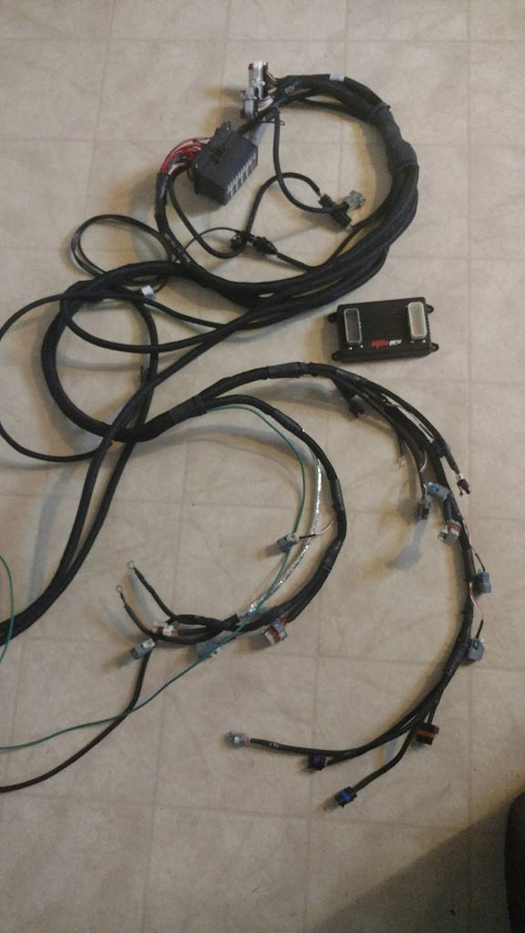 First up is an MS3pro with LSx plug and play harness. I already had a good portion of my engine harness done, but I got scared of making my own harness from scratch. I made a few mistakes on a friends MS3x, which was easy to correct with a through-hole PCB and patch harness, but if I screwed anything up with a fully heat-shrunk harness to the MS3pro, I'd be SOL. So I took the safe route and picked up the plug and play harness. It's nice because it also has a nice fuse box with it, so you really just need power and ground for the engine to run. A lot of people are questioning my choice to go standalone, so here are the main reasons. I like to tinker, so I like to do my own tuning, and I've been using Megasquirt and Tunerstudio for 4 years now. So I feel a lot more comfortable with that rather than learning HPT. MS3pro also has a lot of really nice features that make it above and beyond the old Megasquirts, so it's not like I'm running an ECU that's "worse" than the stock ECU. I also get features such as flex fuel, traction control, push-button start, PWM outputs, etc. I'll be posting up my control box in the near future, I'm using a jbperf CAN-EGT+, which is an expansion board with 4 EGT inputs, 4 ADC's, a bunch of PWM inputs and outputs, serial wideband connection, and I'm going to be mounting both this board, the MS3pro, and 2 14point7 SLC-OEM wideband controllers in a single project box. So it'll basically be a plastic enclosure with 3 35-pin ampseal connectors (2 for MS3pro, and 1 for all the jumpers I'll run from the expansion board and wideband controllers).