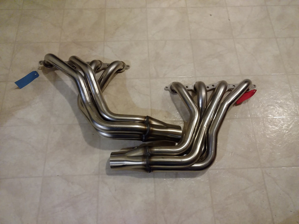 15252748_10154876695933115_23731628287024646_o by Adam Watson, on FlickrNext up are a set of V8r Kooks long tube headers. These really are beautiful. It's almost a shame to sandblast them and coat them, but I believe that's the route I want to take. I haven't 100% figured out what the rest of the exhaust is going to be, but I know it will be an x-pipe and dual magnaflows. I've been talking to a few exhaust guru's, and it sounds like it may be worth running 3" piping past the x-pipe, since the headers don't have a diameter reduction close enough to the collector to make it worth reducing to 2.5" immediately after the header. The current plan is to run slip joints with springs right from the headers, then another set of slip joints before the mufflers, unless anyone has a good argument against that.