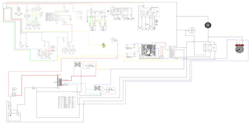 Pretty much finished up my wiring diagram. *I downloaded the wiring diagram for my year, deleted the pages that I'm eliminating from the car, then pasted each diagram in a big photoshop file. *Then I erased all wires I didn't need, and rearranged the power circuit, since I'm replacing the stock fuse box with a Bussmann fuse/relay box. *Having a full wiring diagram will be super nice when starting wiring, and when trying to modify things in the future. *I will then make closer snapshots of each subsystem, label all connections that go off the page, and print them out to make a wiring book for the car. *You can't see much detail from this picture, I may post the detailed pictures if I clean up the diagram a little.