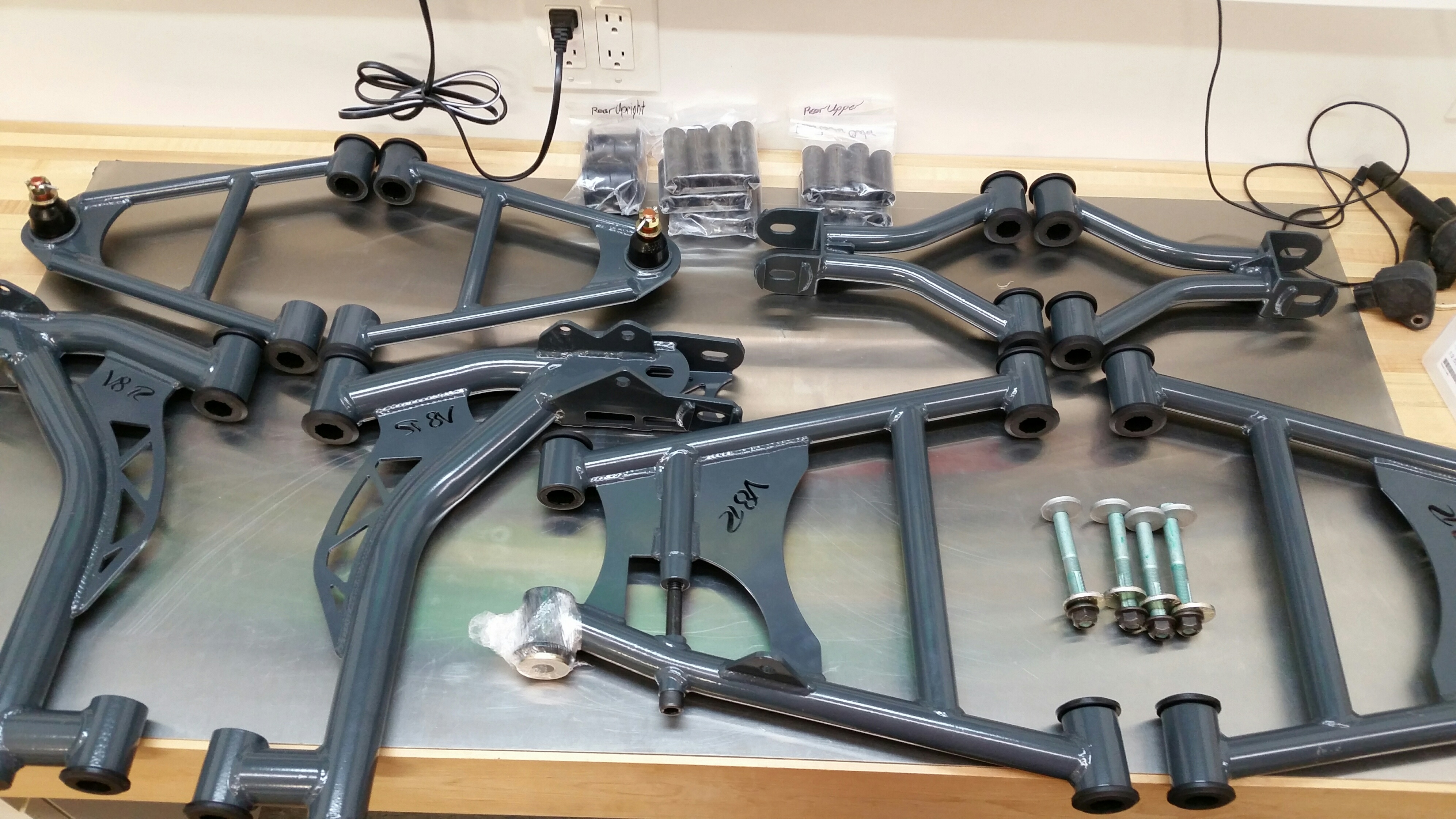 Control arms arrived. Awesome quality! Not sure how I feel about the color. They appear black on Shandelle's website. Maybe I will have them re-coated down the road.