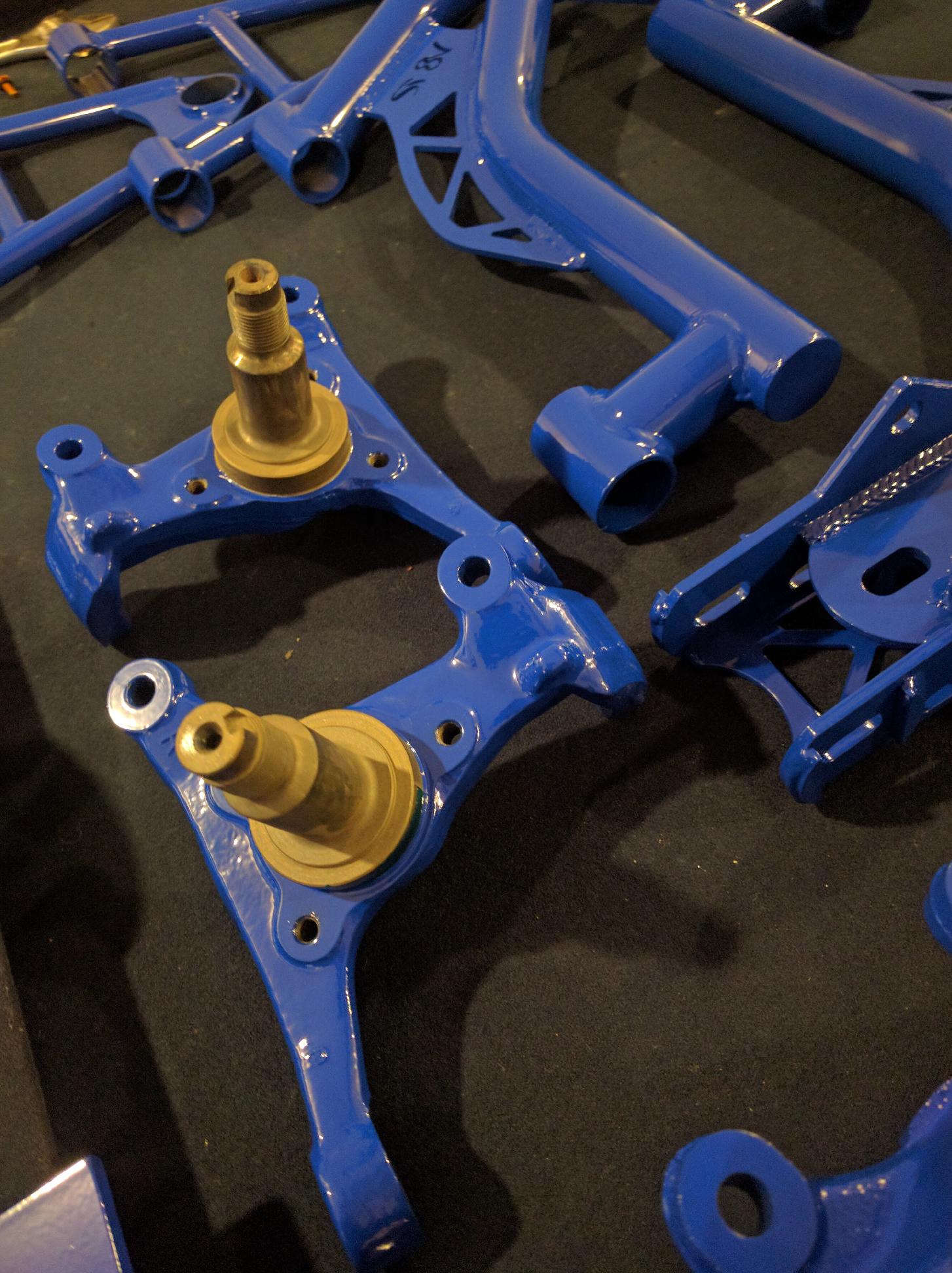 I couldn't stand the primer grey powder coat on my brand new V8R control arms. I had them blasted and coated to match my car.