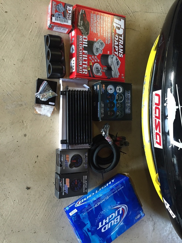 I know what you mean. It seems like the parts you order never seem to fit like you thought they would. Had to stop and switch to vodka. Wait till the speed shop opens tomorrow. The lines for the relocator hung down too low. Have to find some 90 degree elbows to turn the line quicker. Last thing I want is the street to wear a hole in my oil lines. Oil cooler is mounted and looks good. Just have to finish all the plumbing.