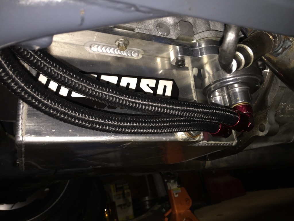 Here are the lines coming off the pan that run up to the remote oil filter: