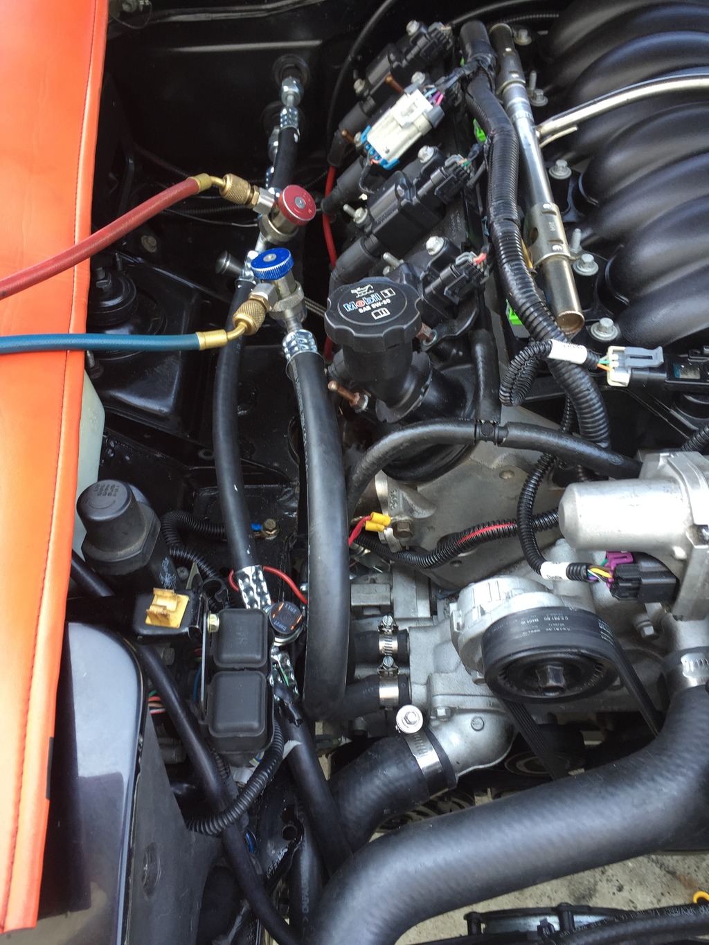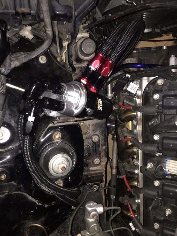 I'll post final material list once I know it works. Engine bay is so crowded, I would have liked for filter to mount on firewall on passenger side, but lines would have been long and harder to run with those headers. I plan on upgrading to the long tubes and wanted to keep as much space as possible.