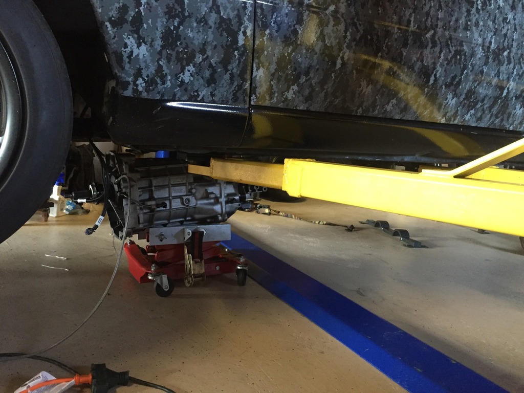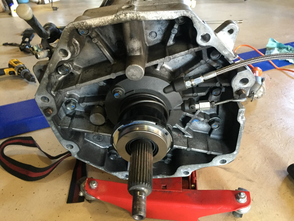 I've been hearing a strange noise sometimes when I begin to let out the clutch. Since I'm going to run in the Texas Mile next weekend, I figured I would solve the issue. Dropped the transmission to change the clutch release bearing and add a remote bleeder.