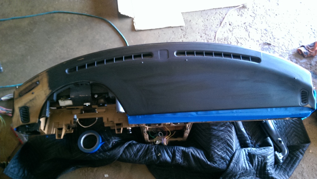 Sadly when I pulled my dash out of storage, I found that it had accumulated a few scratches, and is now showing the tan underneath....That blows, but oh well not a huge deal. I picked up a can of SEM vinyl/plastic satin black paint which Ive used in the past with great success. I will show you the final product later.