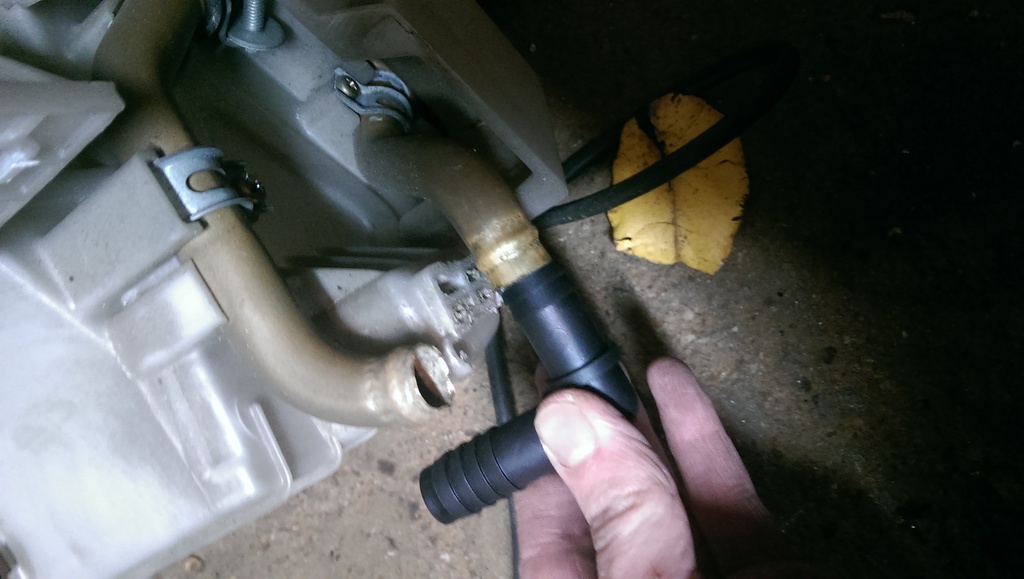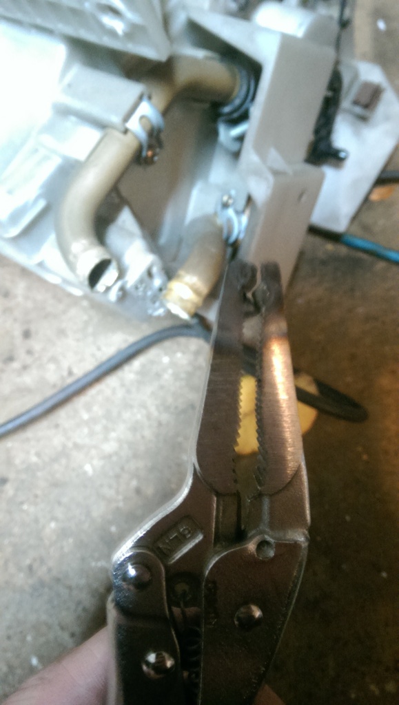 Notice I also cut off the lower retaining tab. This was necessary to get my hose on the line. Im not too worried about losing the support, as the lines will be tight against the padding on the firewall, and I will zip tie them together.