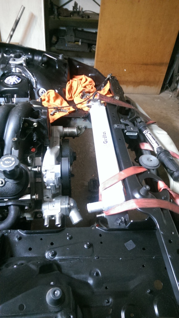 Anyhow, Saturday morning I decided that I didnt like Rev1 of the rad mounts, So I opted to lift it up a good amount, and tilt the top.
