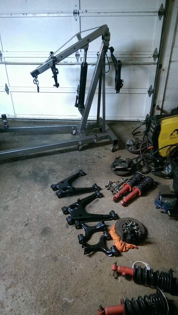 My paint booth! finished up painting all the control arms, and pressing in the new poly bushings.