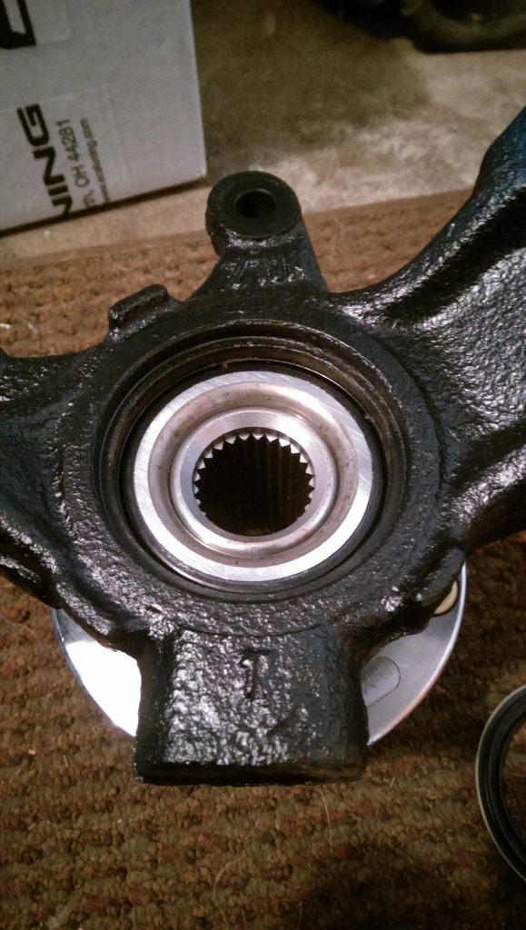 Next I installed new wheel bearings, and hubs into the rear knuckles. Bent both rear lower control arm bolts. That sucked. Those are expensive bastards at ~$17 a piece!!
