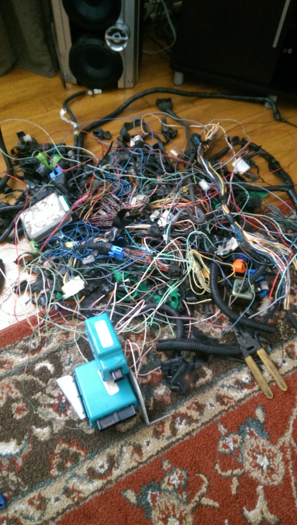 So Ill start at the beginning. After deciding I wanted to ditch all the Airbag stuff as well, I went back to work on the Mazda harness and ditched a ton more wires.