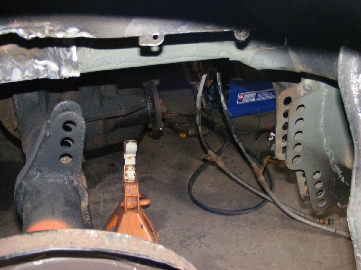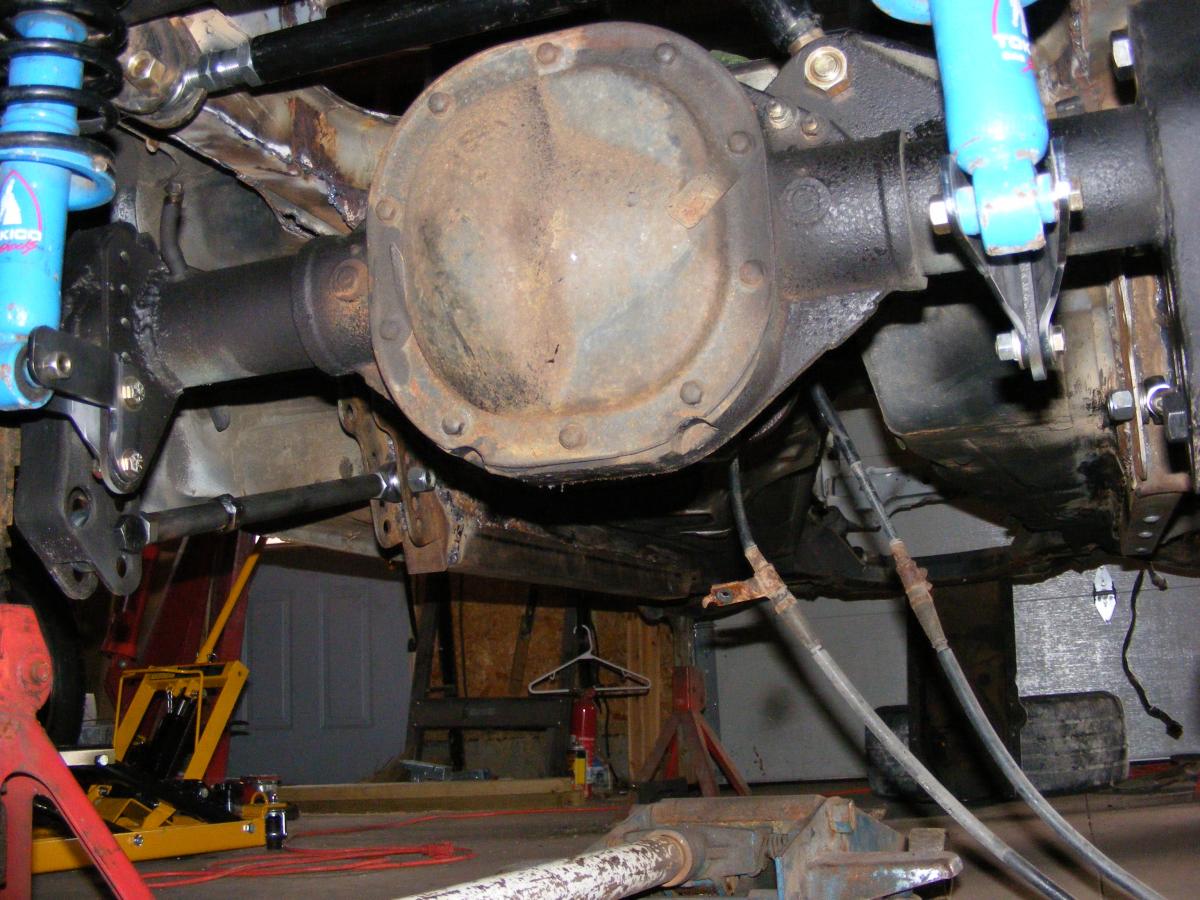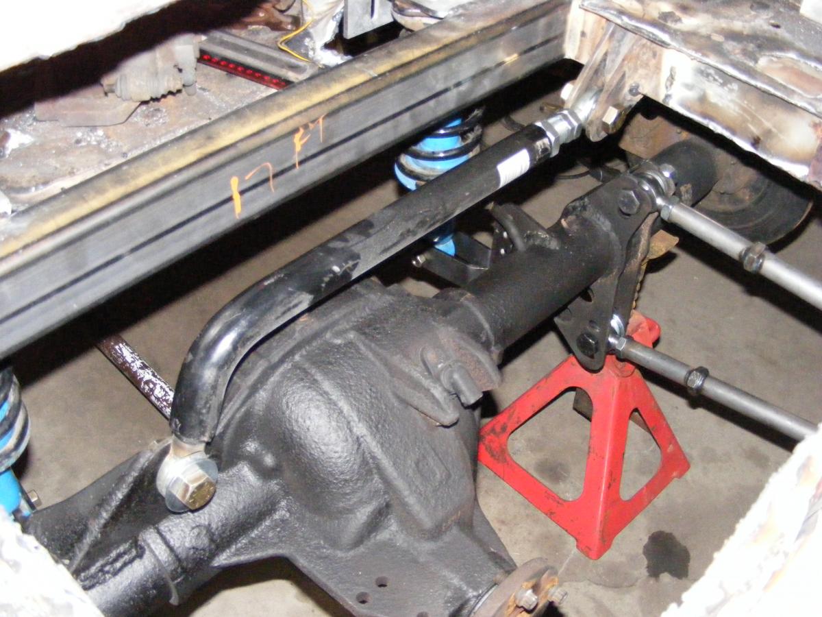I built a 2x3 mild steel frame and bolted in an 8.8" out of a 2000 Exploder. Suspension's C&E 4 link, Tokiko rear coil overs. Home made 6 point roll bar. Front brakes are Corrado conversion. Going SBC & T5 route. Hope to be fabbing motor mounts this weekend. DJ