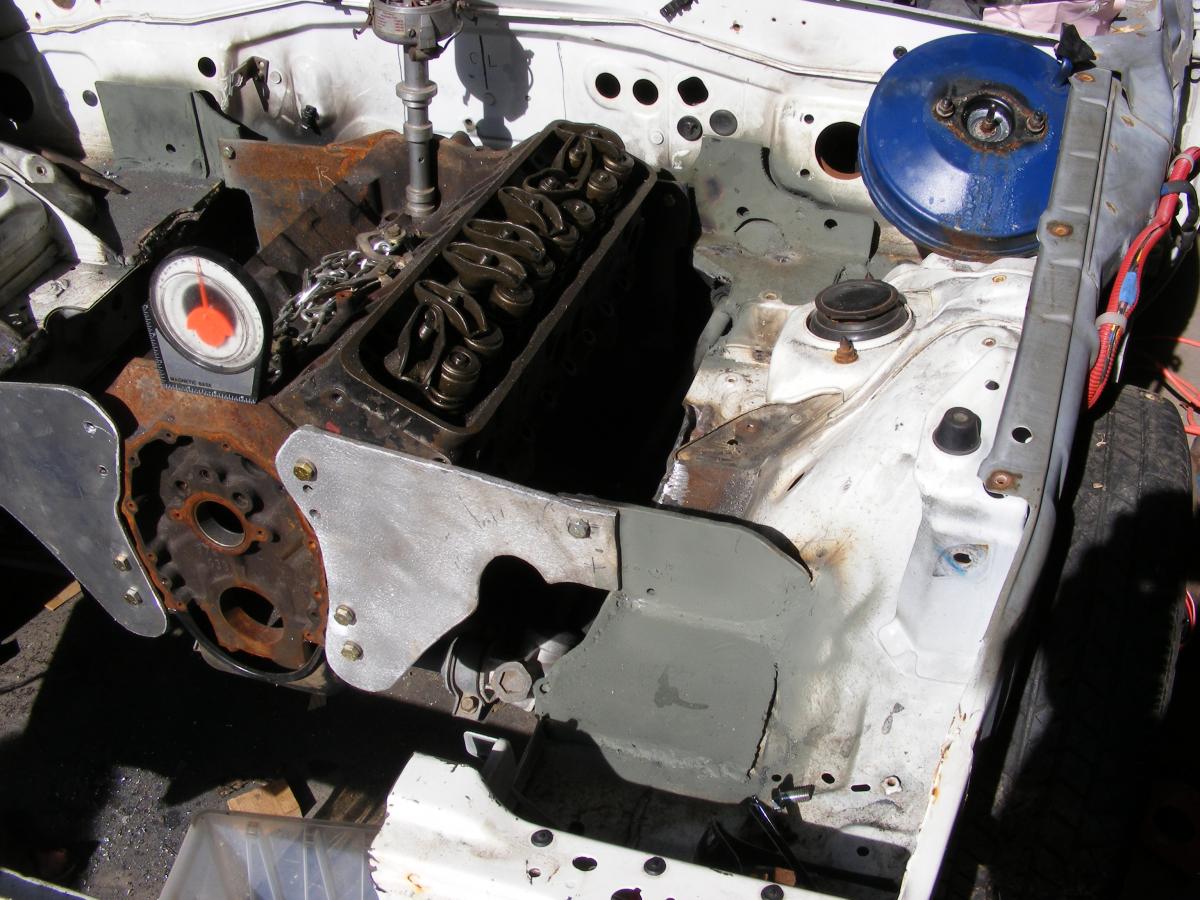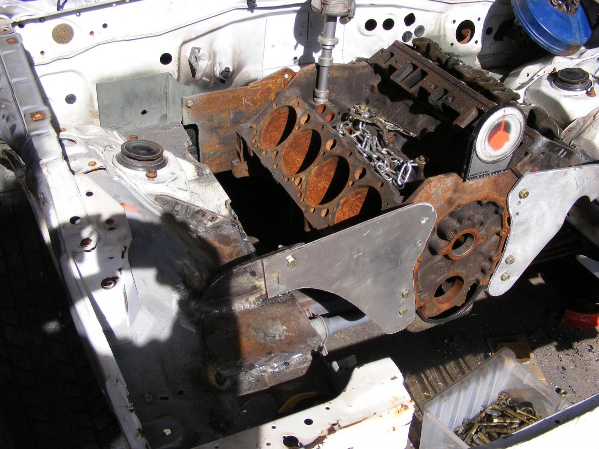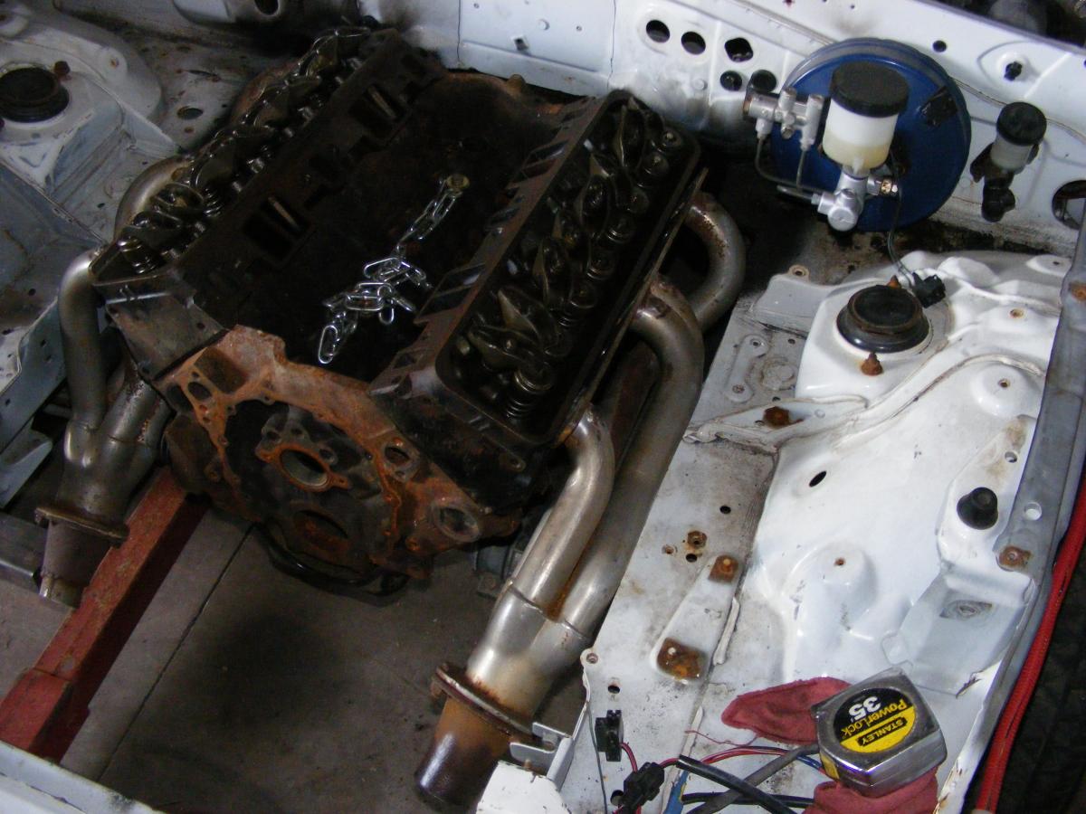 After getting beat to death at work this summer, I'm finally getting a breather, and time to work on my swap. Hand made aluminum front plates, 3/8" steel mid mount. Left mid plate mount had to be moved 3/4" back for brake booster. Scrapped reversed headers.