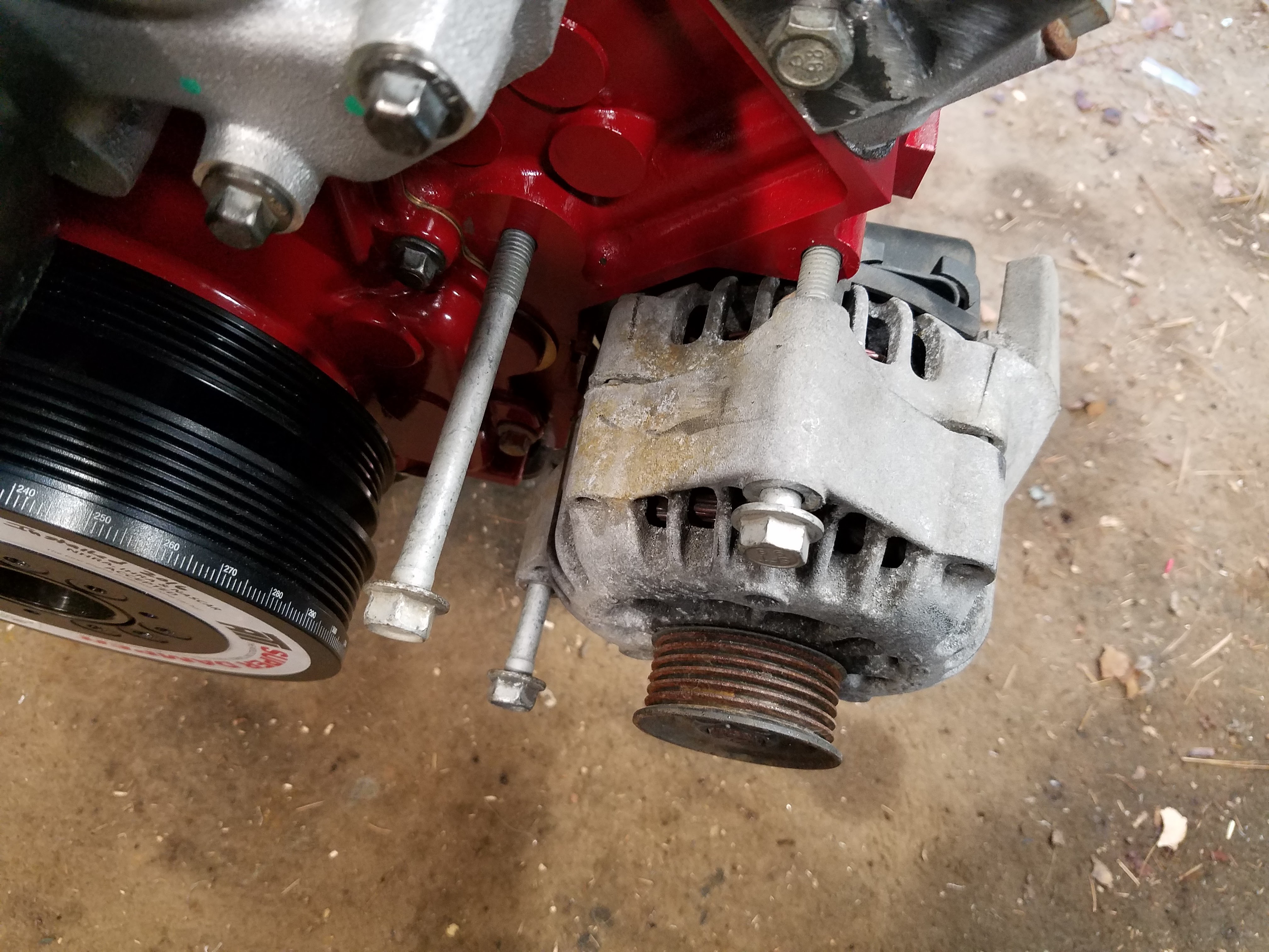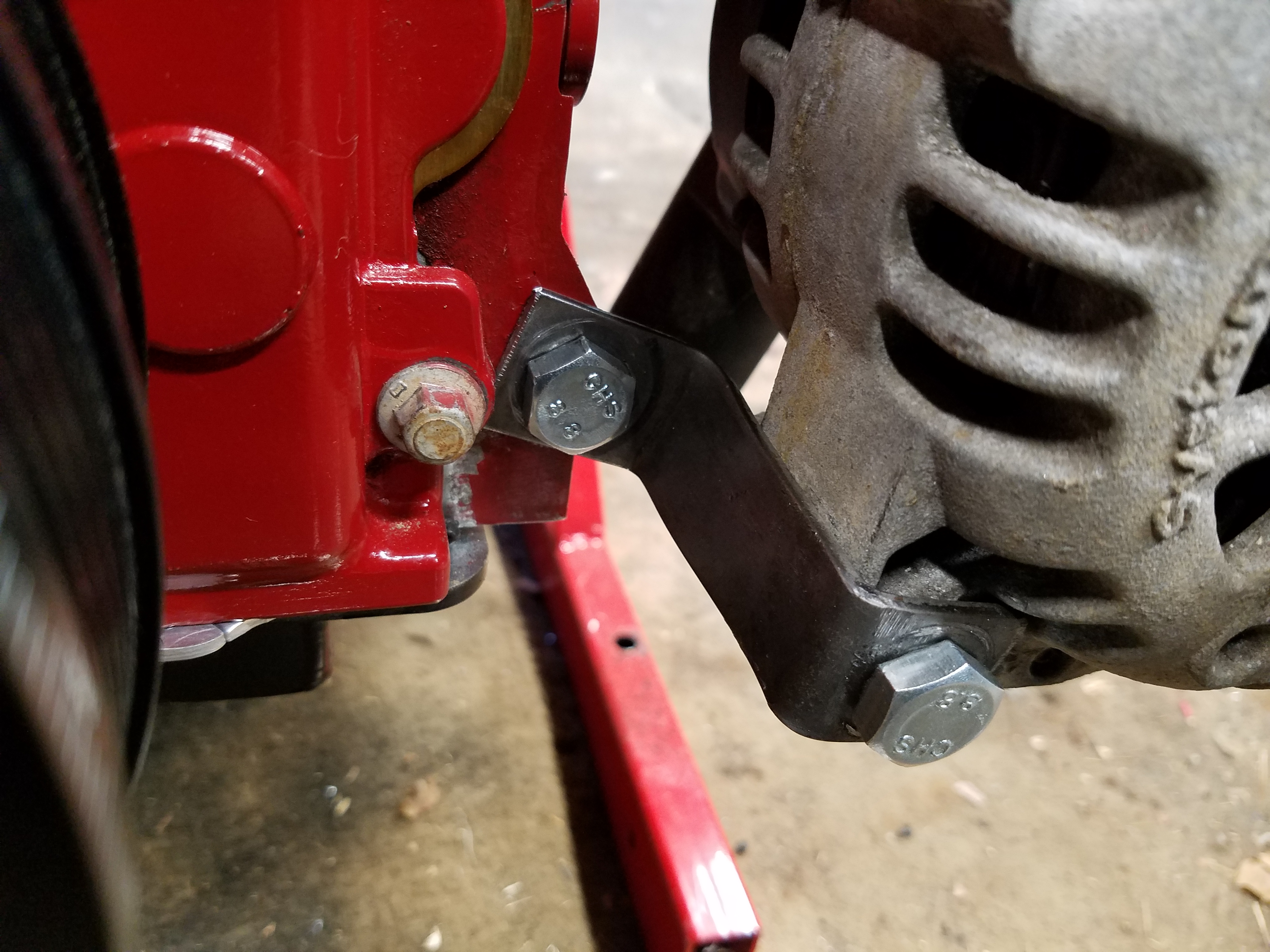 I will be adding a bracket for the front of the top bolt and tie it into the 3rd mounting location used by the oem location. I'll also add a bracket for the mount at the back of the alternator.