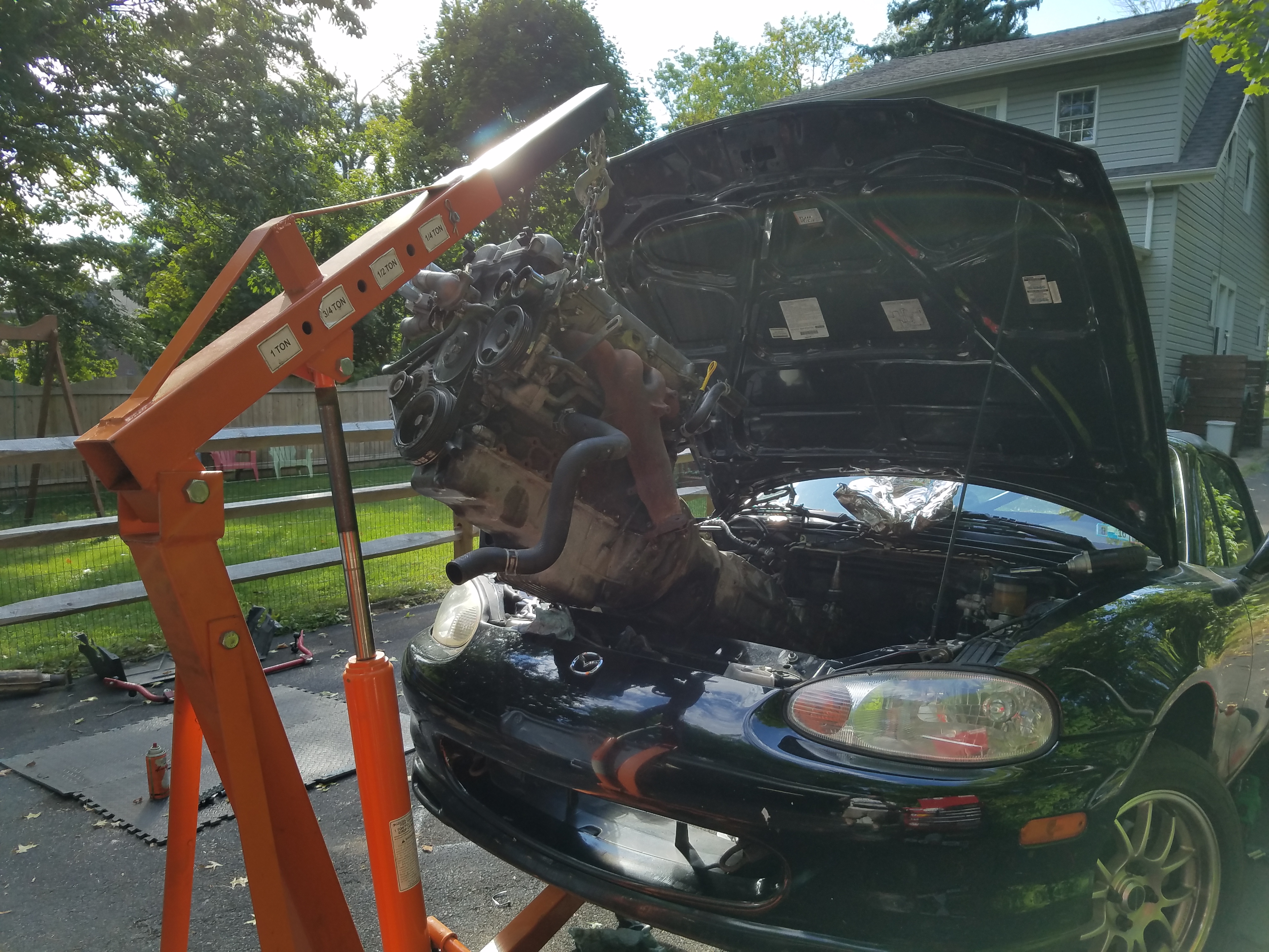 Next up will be the clutch/flywheel, and the Miata engine coming out.