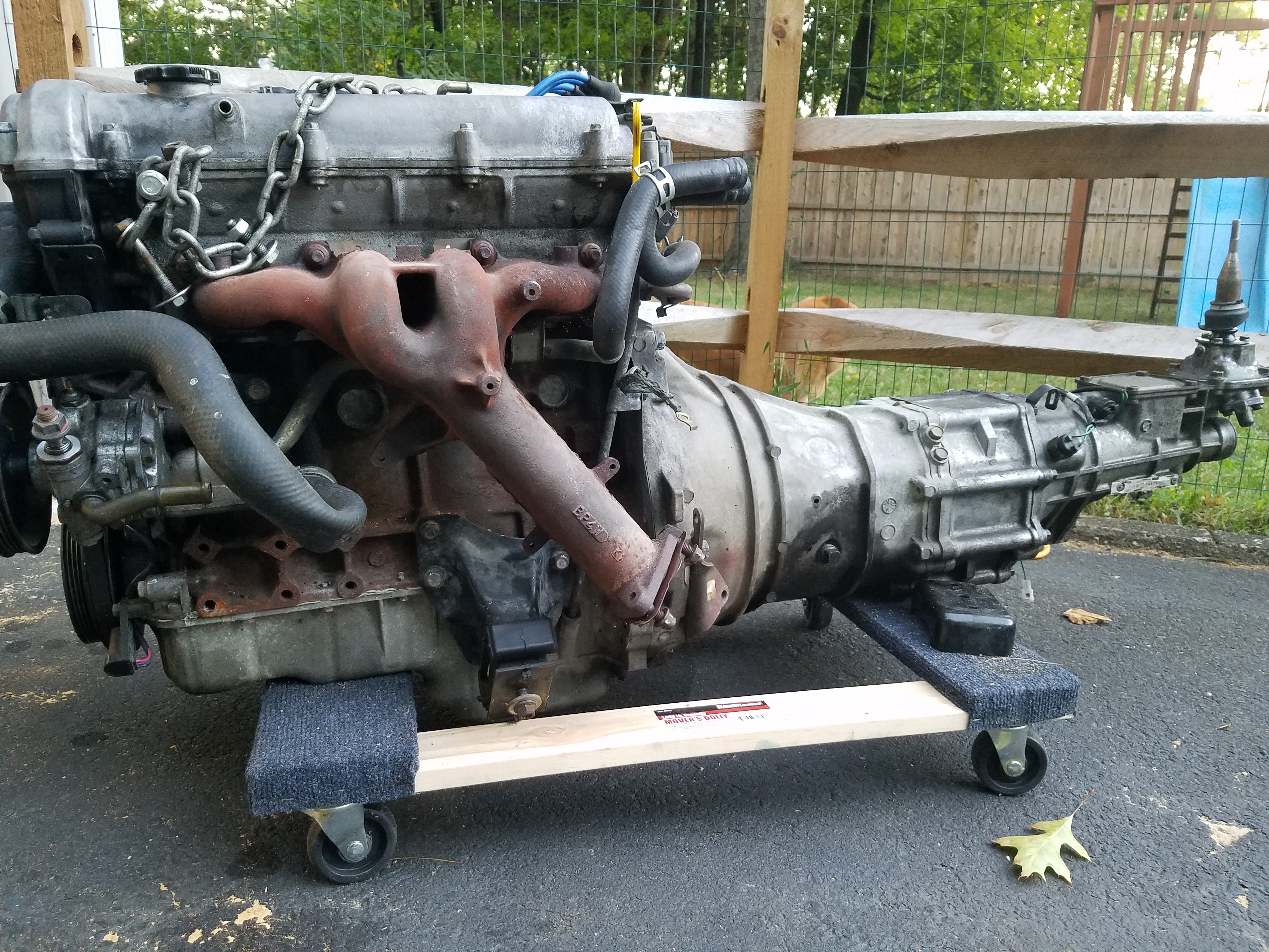I decided to pick Labor Day weekend as the weather was looking nice, and I could do it in the driveway w/out fear of rain. One side of the two car garage might've been able to pull it off, but the engine hoist makes WIDE TURNS like a Semi and my garage floor is not very level... old house, old garage.