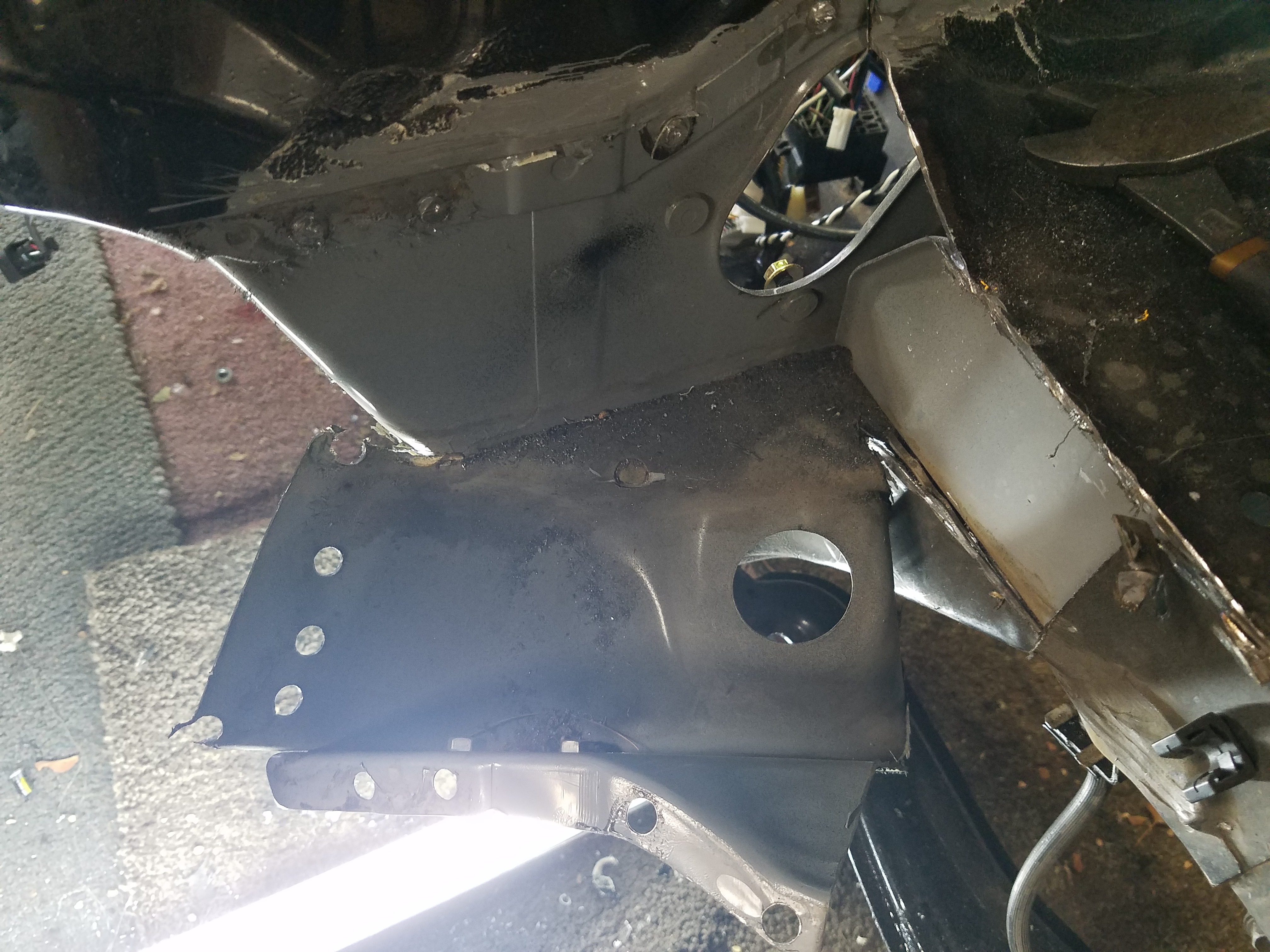 On the first one on the passenger's side, I tried to drill out spot welds where I could, and did some cutting from the bottom. Seemed a bit laborious. On the driver's side, I did the spot welds from the top and was able to bend it down and then could make the cuts from the top.