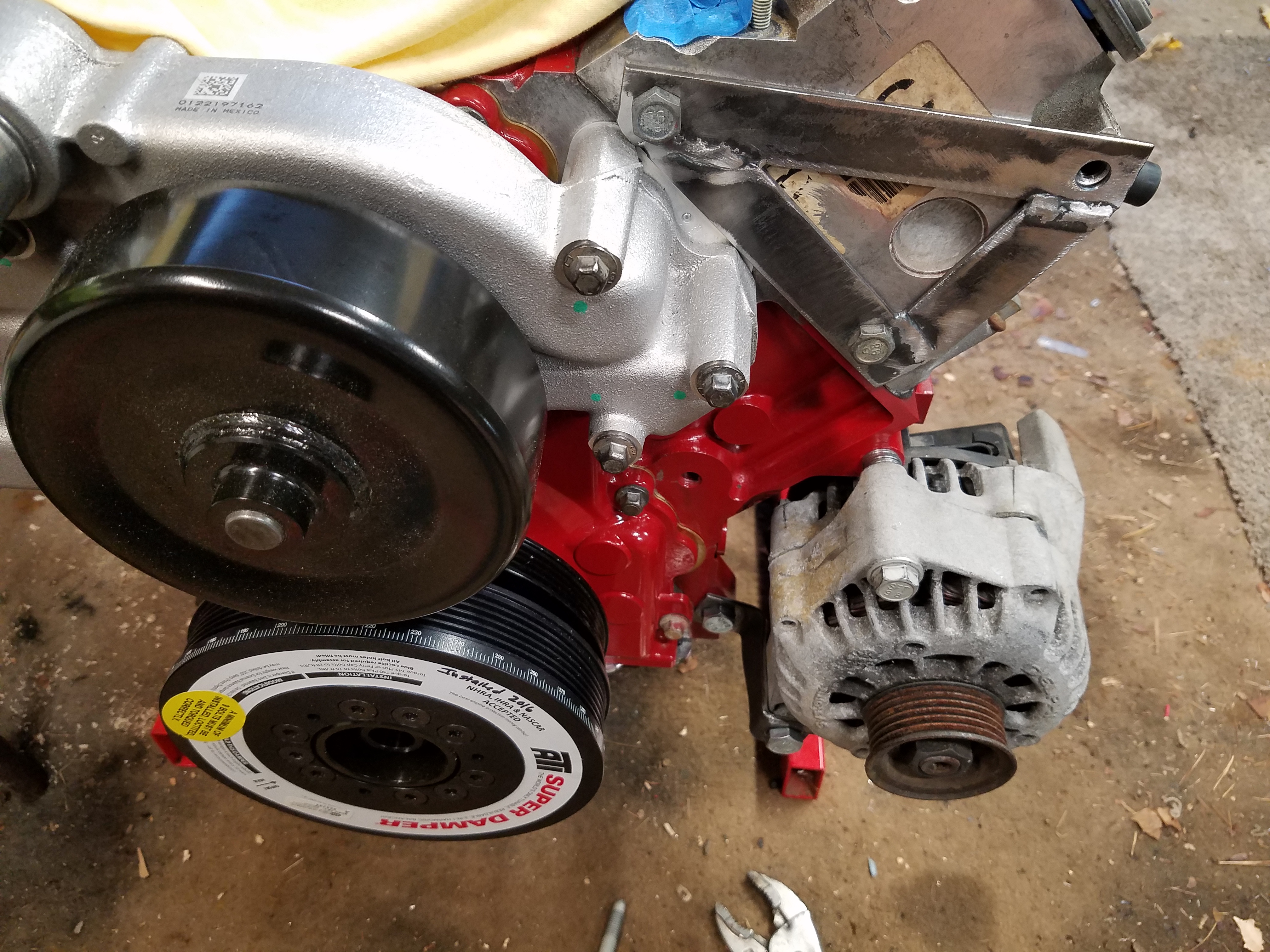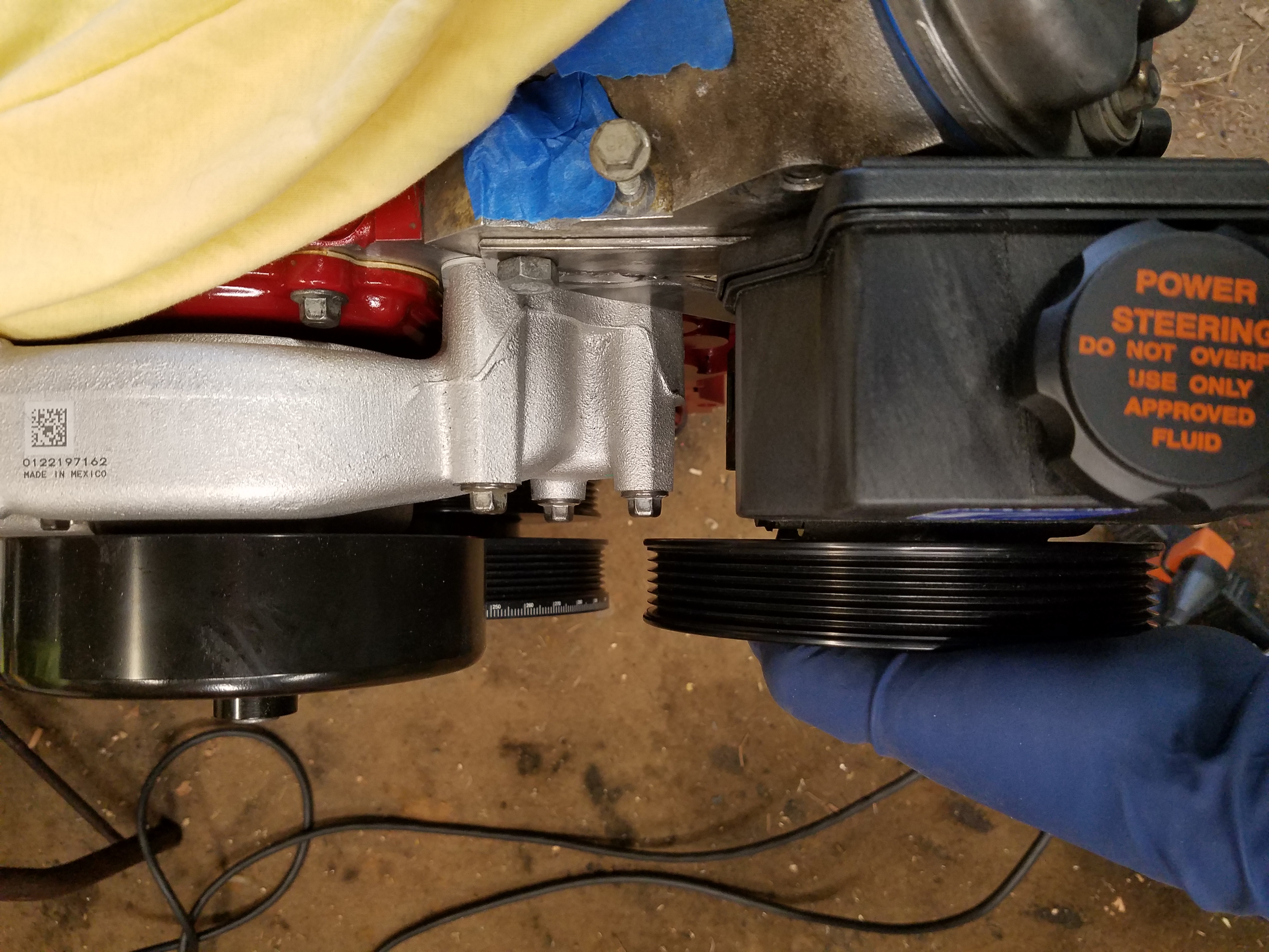 And what I realized is that Fbody pump makes for a pretty tight fit if I want to align the belt with my Corvette (shorter) style crank damper.