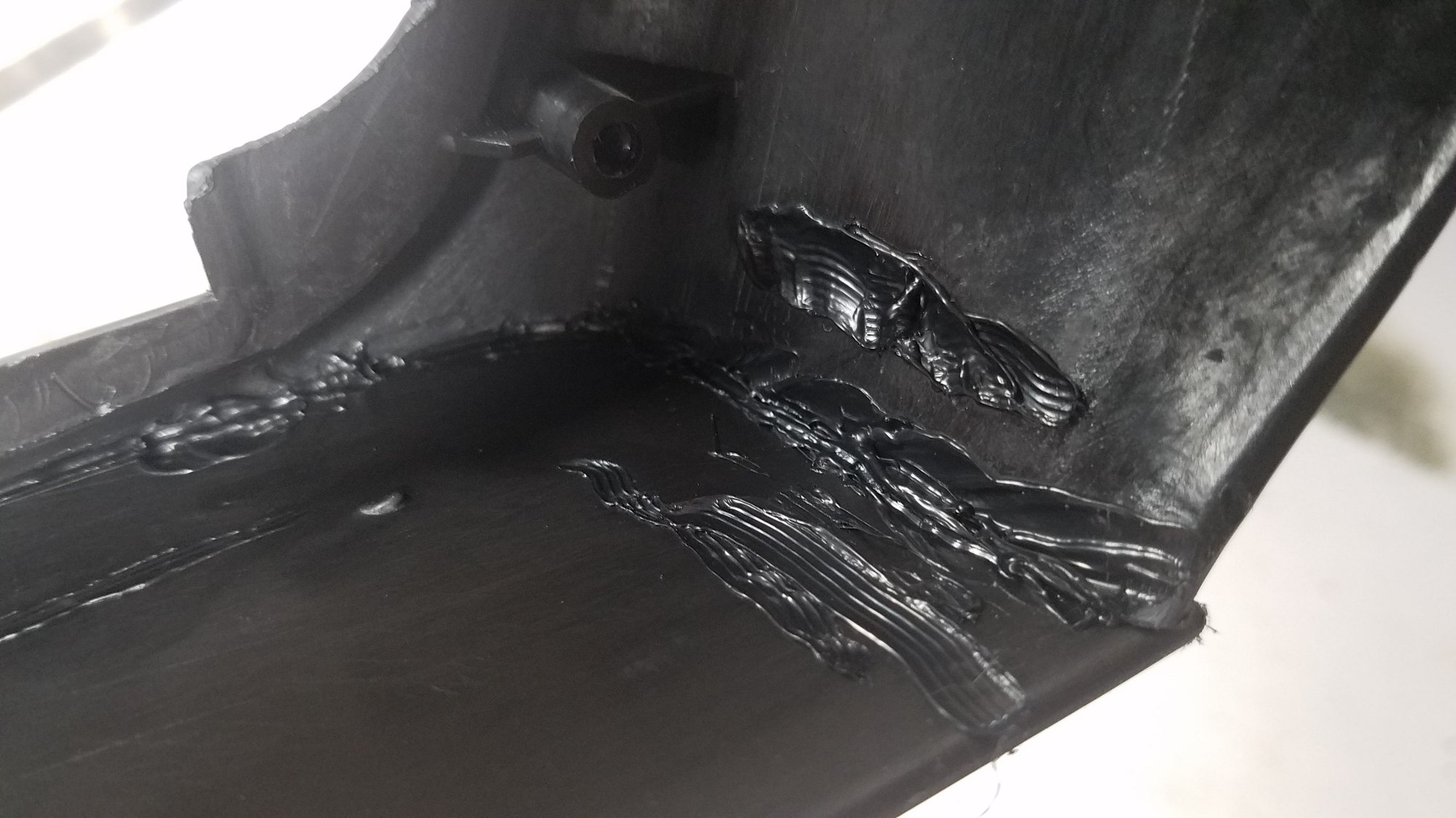 I just used the tip of the iron, with the heat all the way up, and ran it along the seam to "tack" it in a few places, and get the cover plate to fit tightly along the new shortened console. Happy with the fit, and ran the iron along the whole joint from the inside of the console. Most of the marks are from the other parts of the iron rubbing against the plastic.