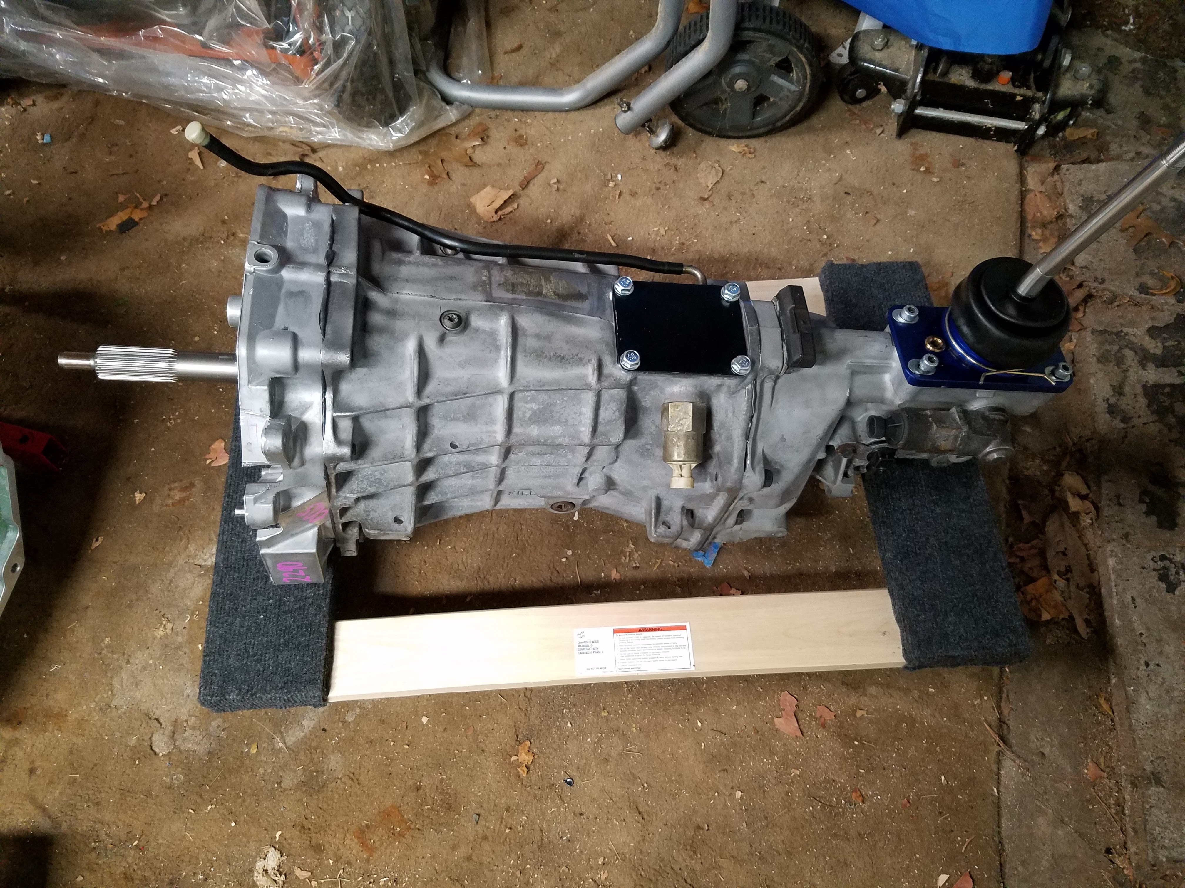 I got in touch with a guy who was selling a LT style T56 (same gears as LS style, but from an earlier Camaro). He is a drag racer and rebuilds his own transmissions. He'd rebuilt this with the Tick Stage 2 kit Tick Performance Level 2 Upgraded T56 Rebuild (600RWTQ) for 93-02 Camaro & Firebird - Tick Performance, Inc.. He also cleans and blasts the case as well so it should look almost new.