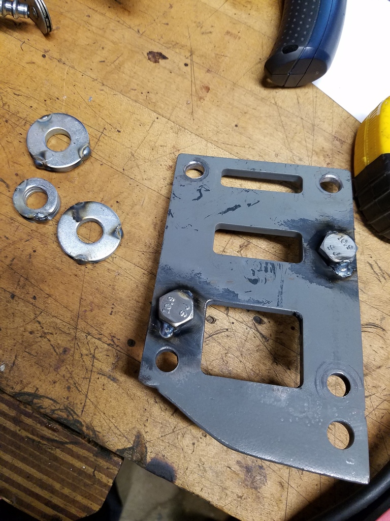 Then I tacked some bolts where the motor mount will attach to the backing plate. This will just make it easier to bolt up as I'll just need to thread on the nut and tighten it.