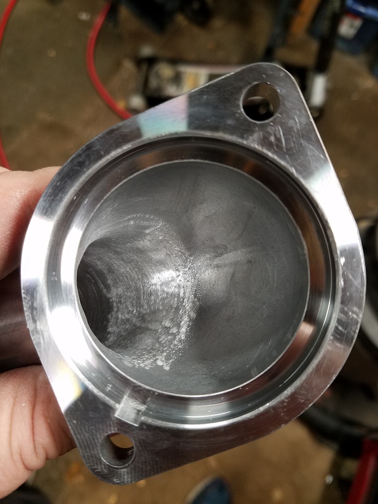 Flipped the water pump outlet towards the engine so it wouldn't cause any issues during the reinstall, and b/c it will be pointing that way. Noticed the lack of any attempt to ease coolant flow