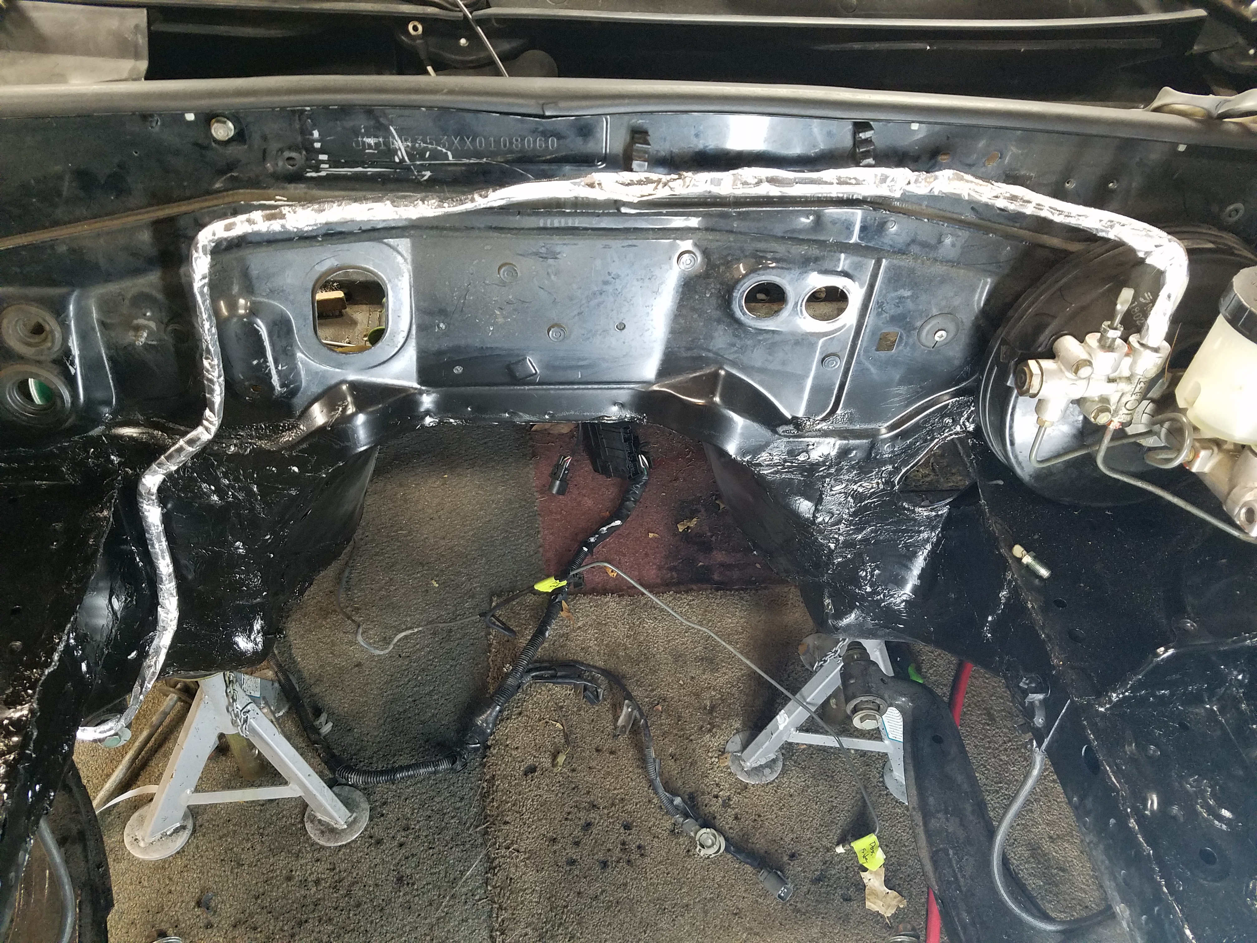 Applied some seam sealer to the engine bay. Went a little heavier on the spots around the tunnel where it was cut open and may also get more dirt/moisture.