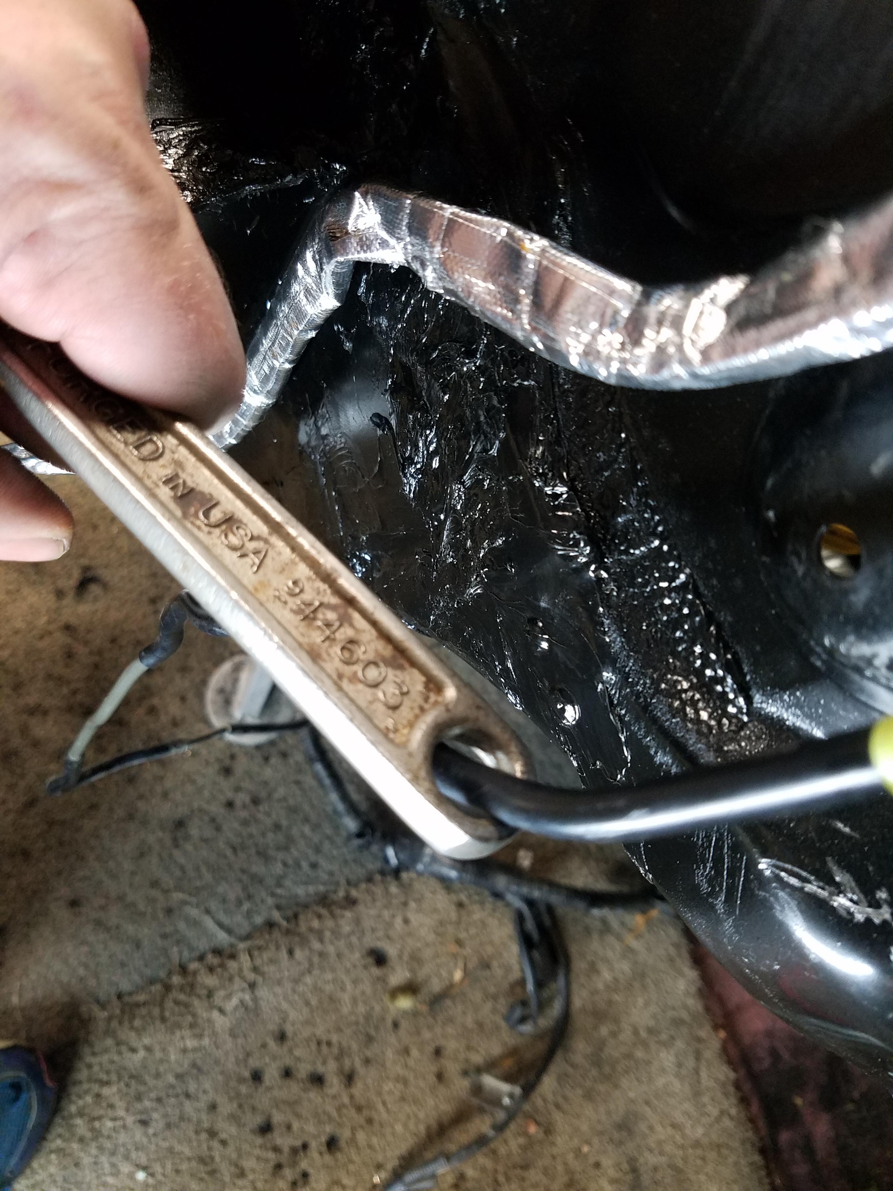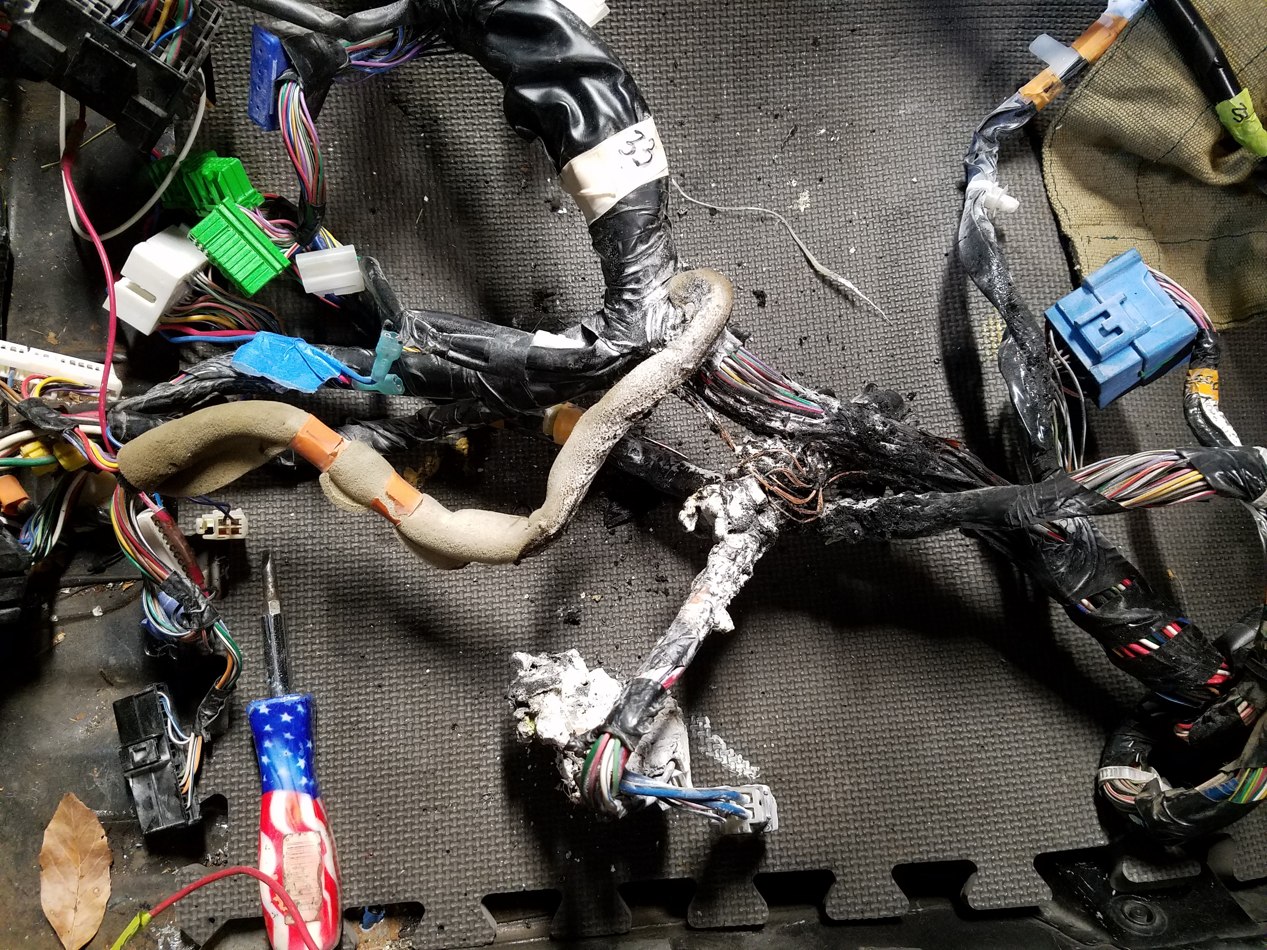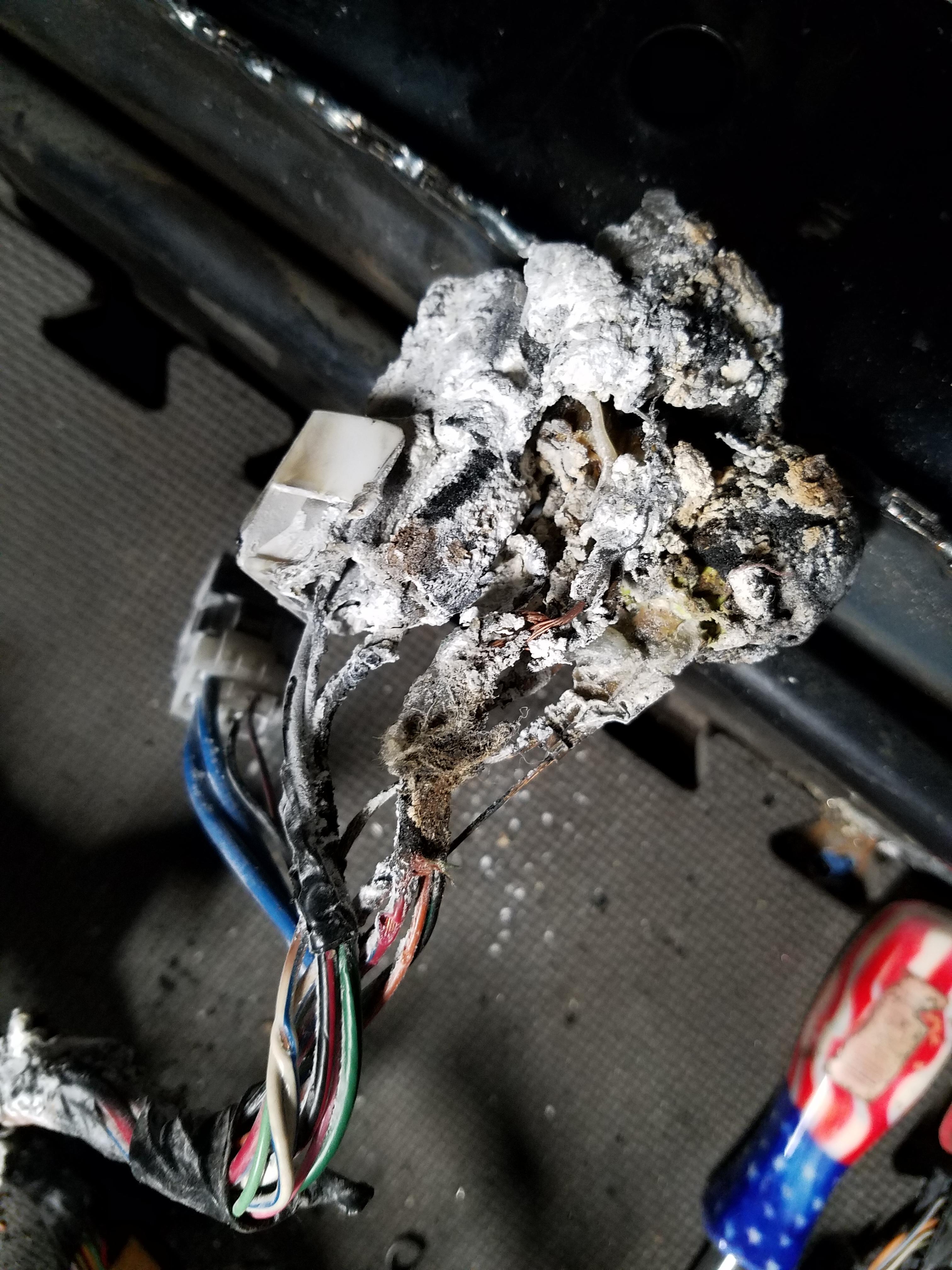 I never fully removed the engine harness, just pulled it away from the inside of the firewall. Figured I'd cut some corners. So I think the fuzzy insulation on the floor of the cabin ignited it but the plastic wire insulation and some connections are what was really burning. The flames were about 18" high as I grabbed my fire extinguisher and gave it a couple shots.