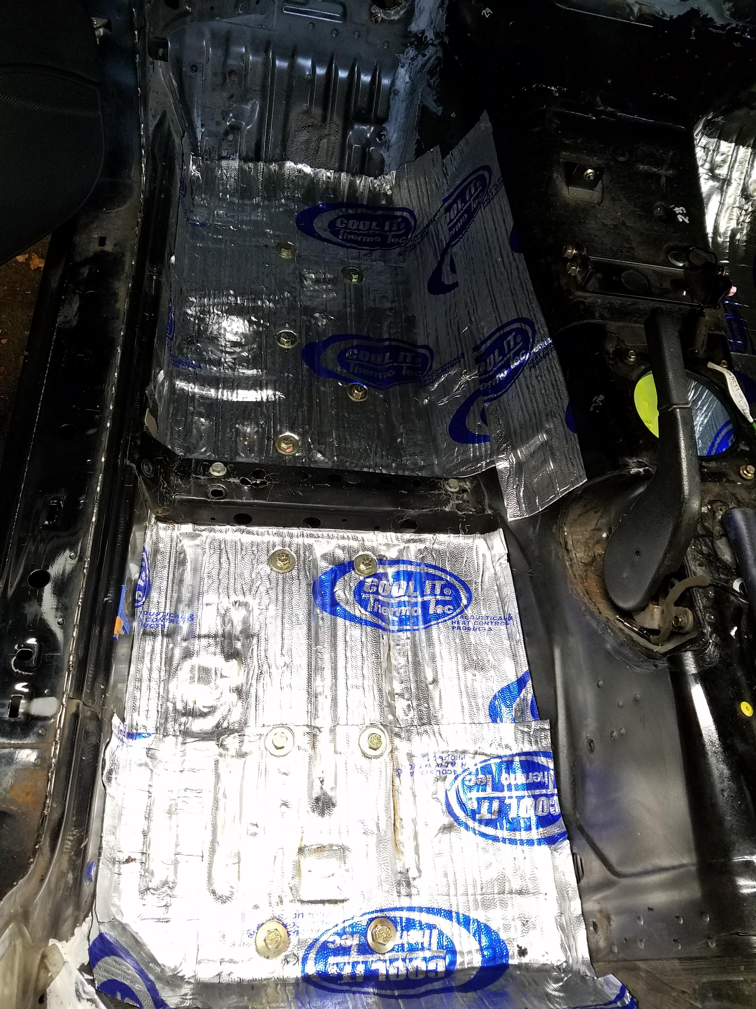 Pic of the interior sound/heat mat installed and frame rail bolts