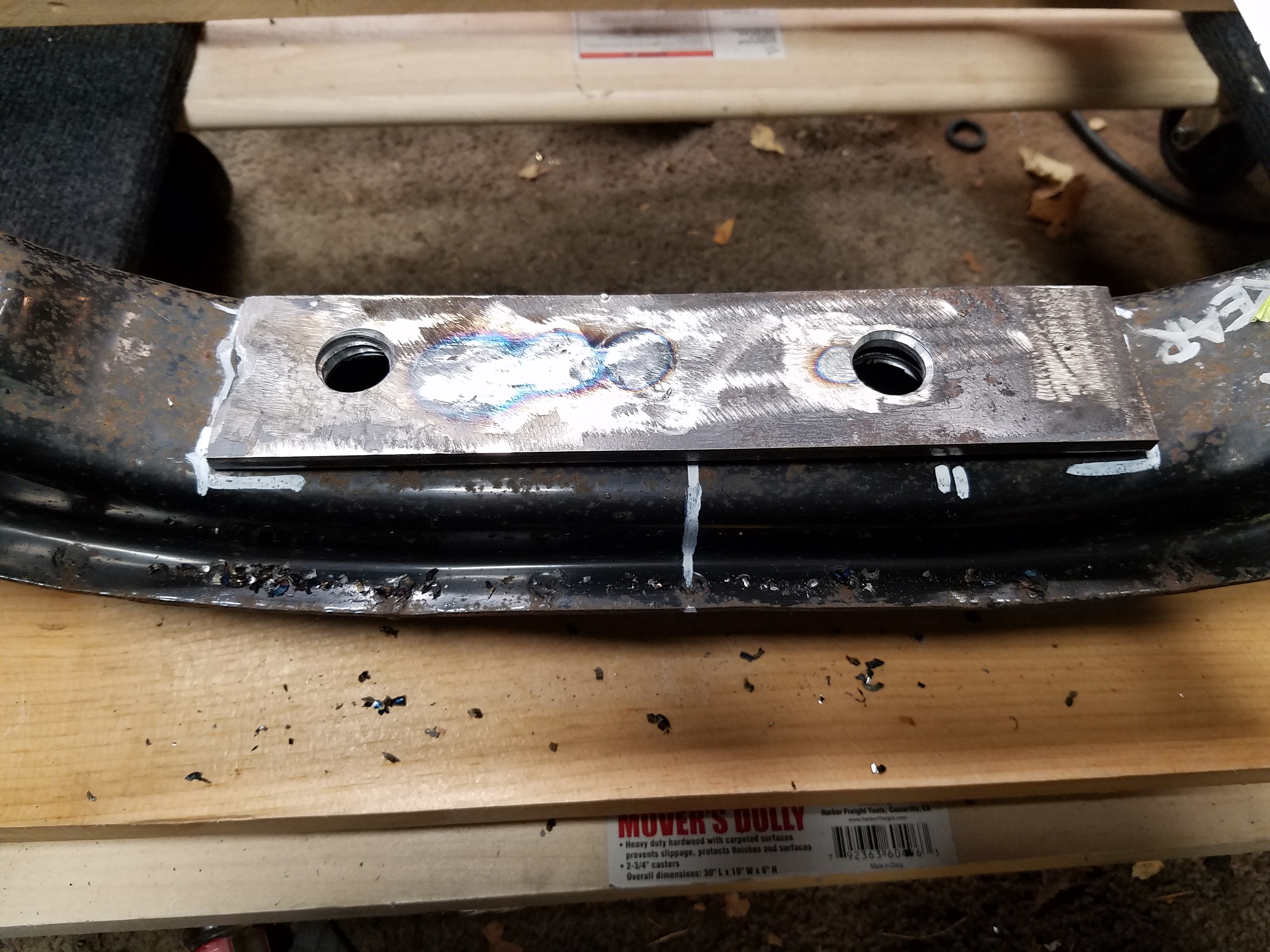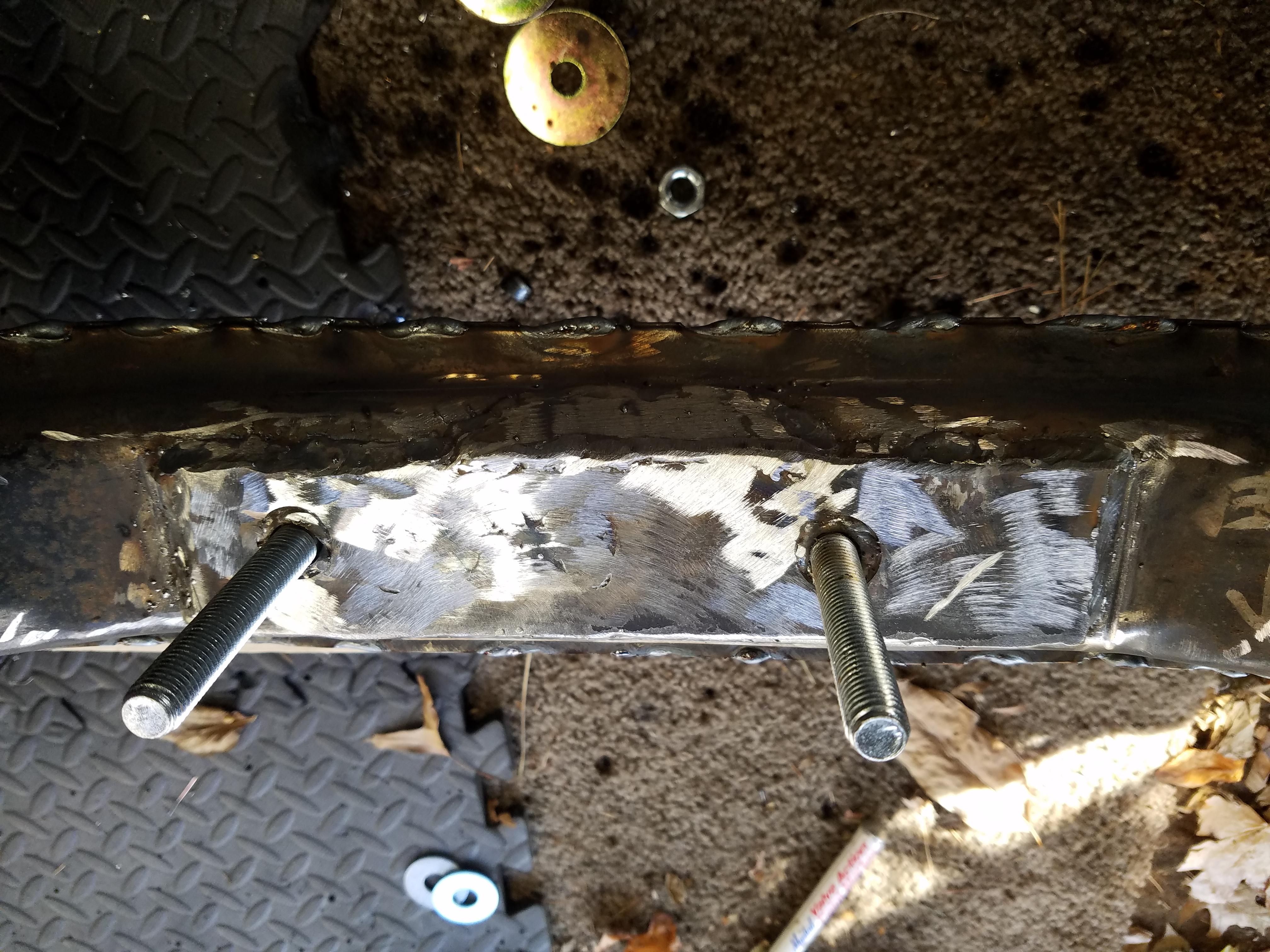Picking up where I left off on the subframe work. After getting the large bolts tacked to the plate in the right place for the diff brackets, I welded the large plate to the subframe. Now I can drop in the diff and bolt it (nut it?) down.