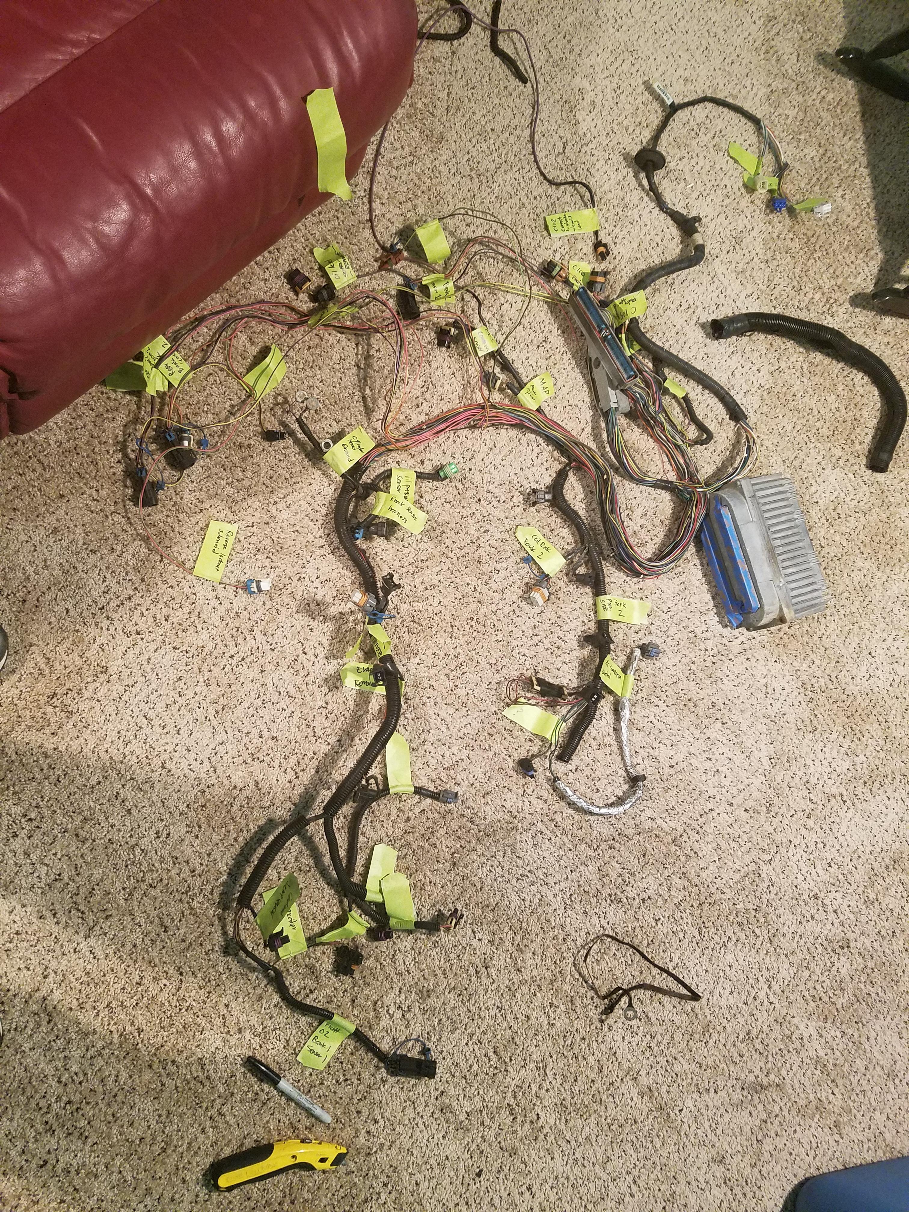 Started picking apart the LS1 harness. I've ID'd all of the connectors, have a good idea of what I need to remove, I have the reflashed PCM, so I'm in a good spot here. I'll post some links and info on the wiring stuff as I wrap my head around it some more