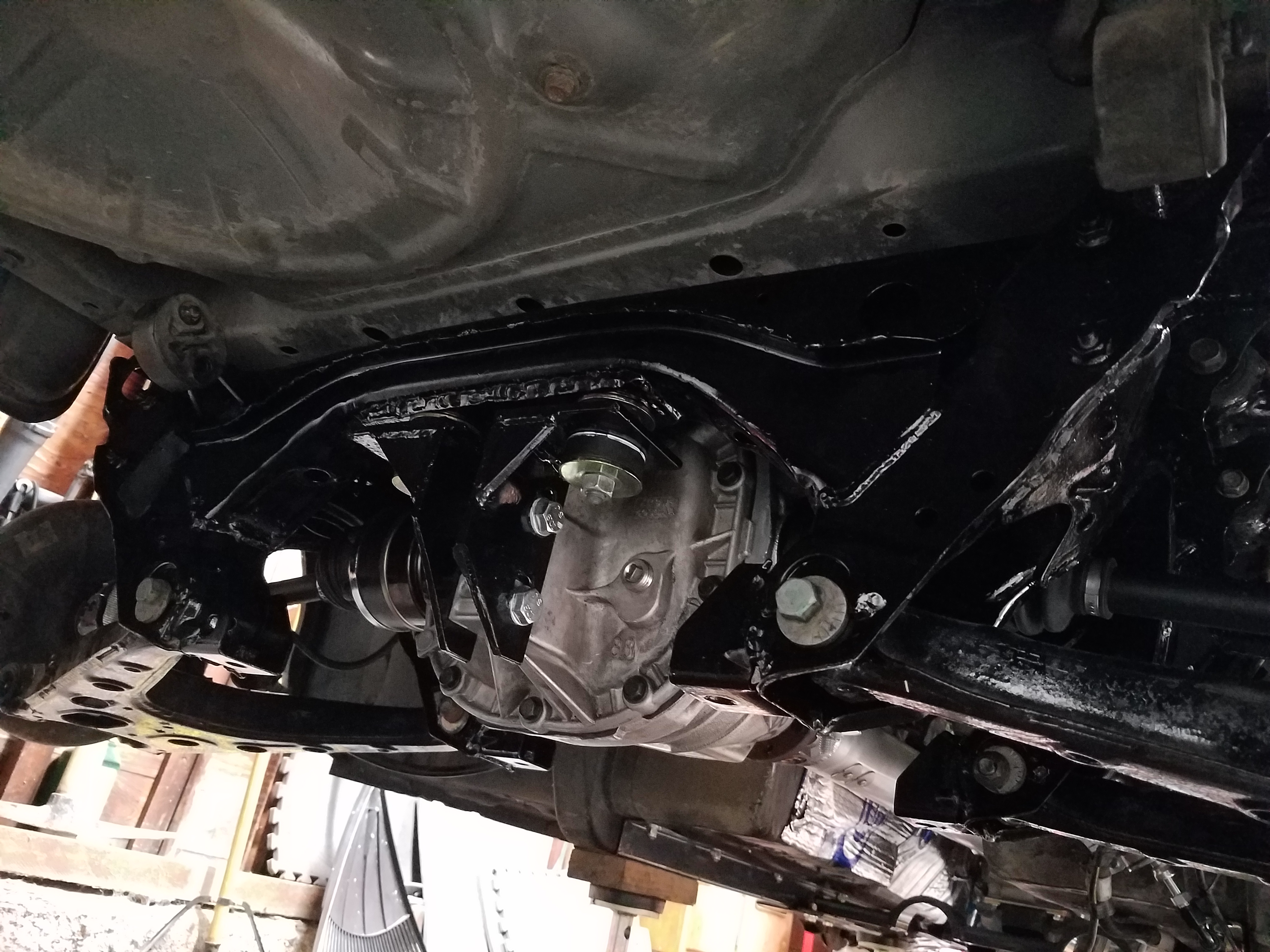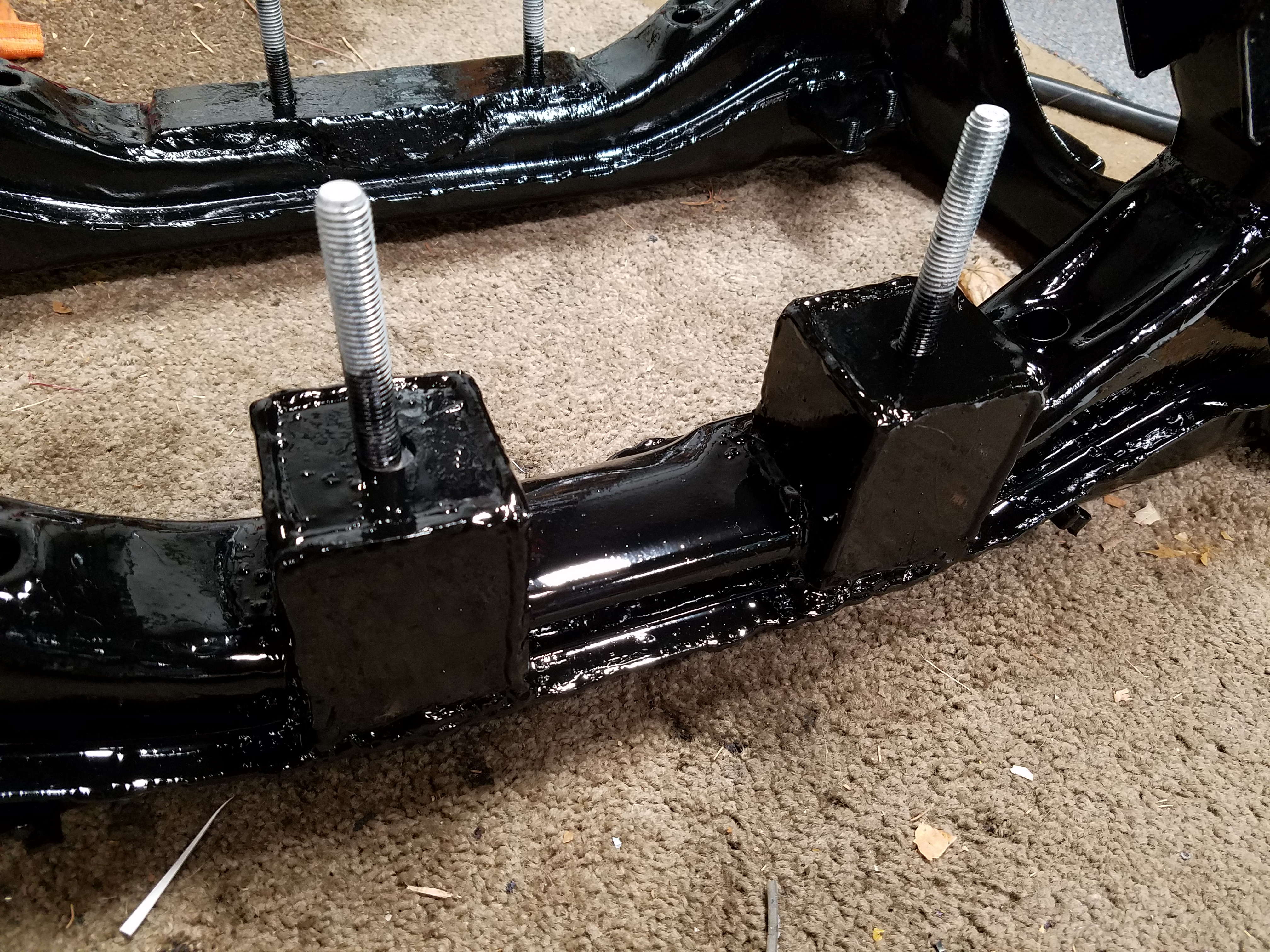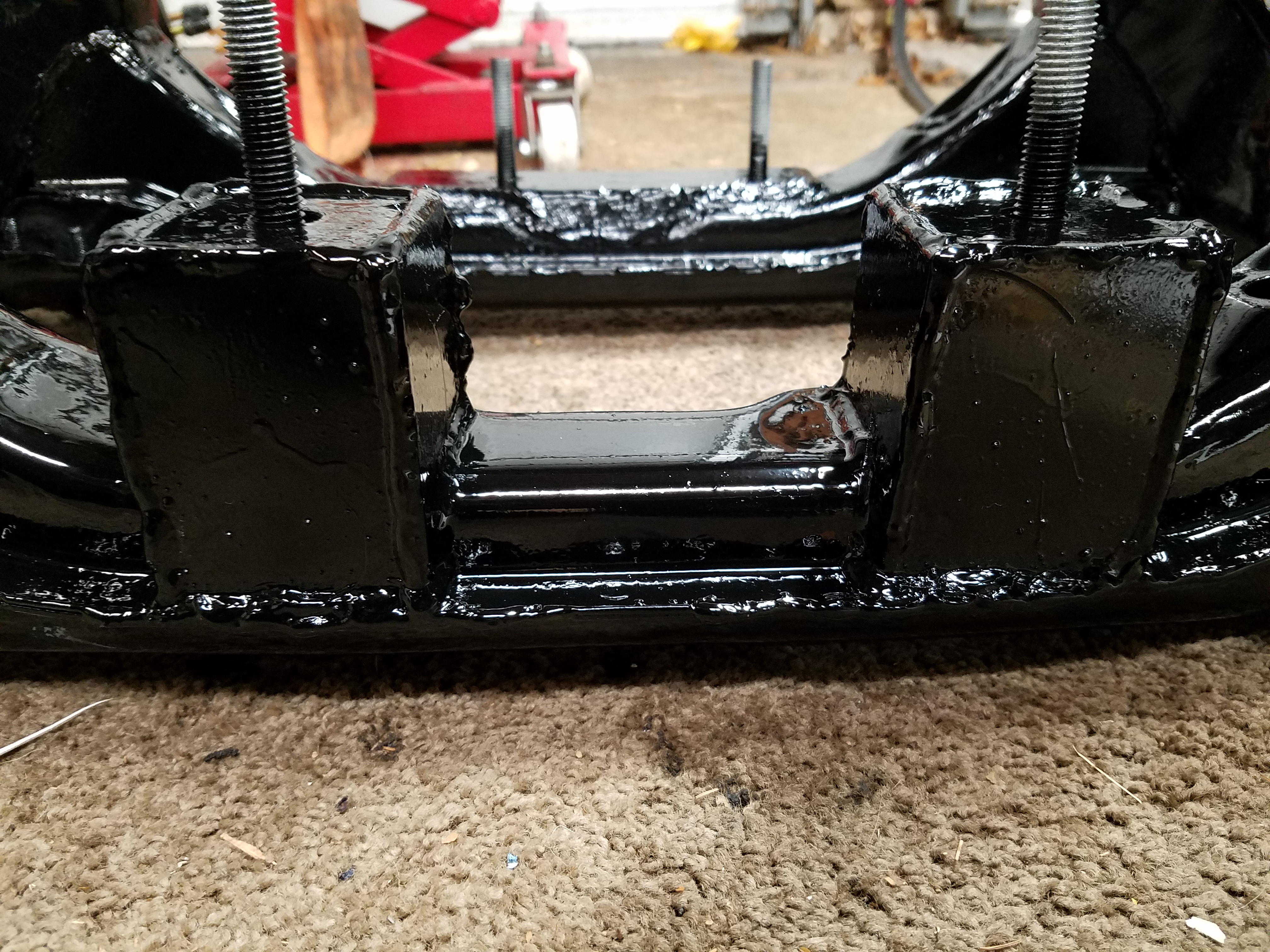 Subframe all welded up, POR15d and painted with gloss black. Turned out pretty nice