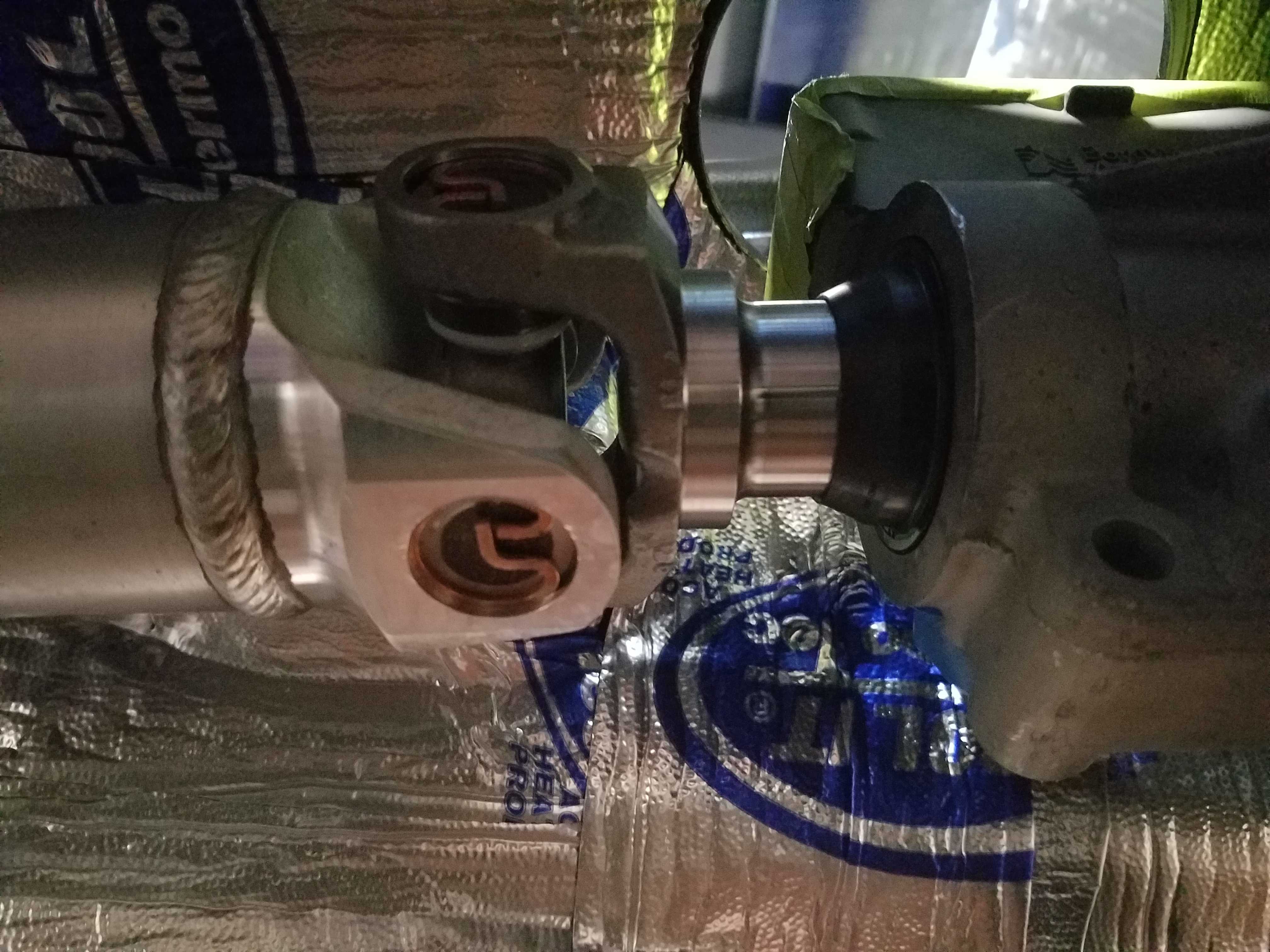 Connection to the T56 trans. If you measured correctly you should have about 3/4" to 1" of spacing between the lip of the T56 seal and where the slip yoke get thicker