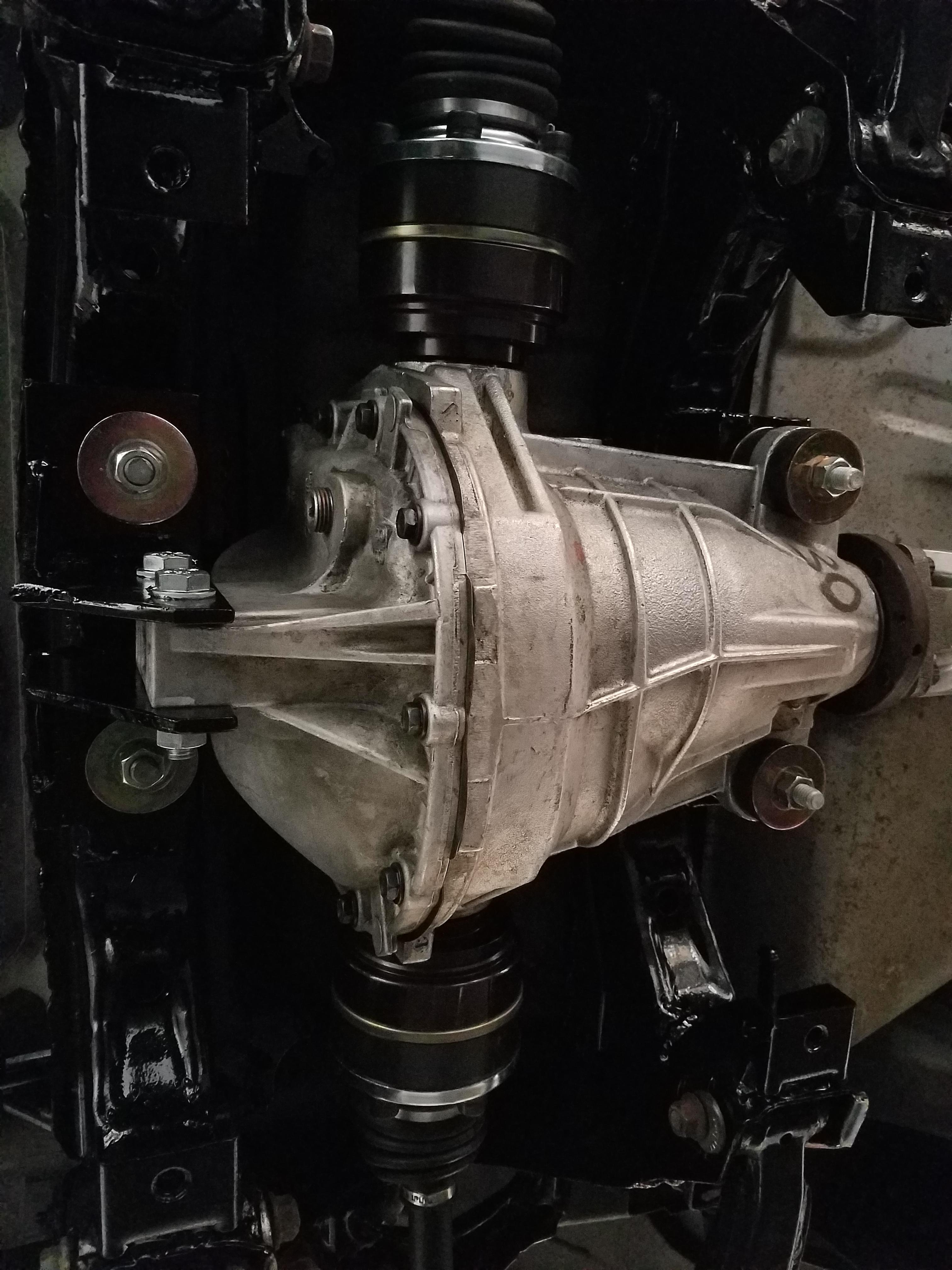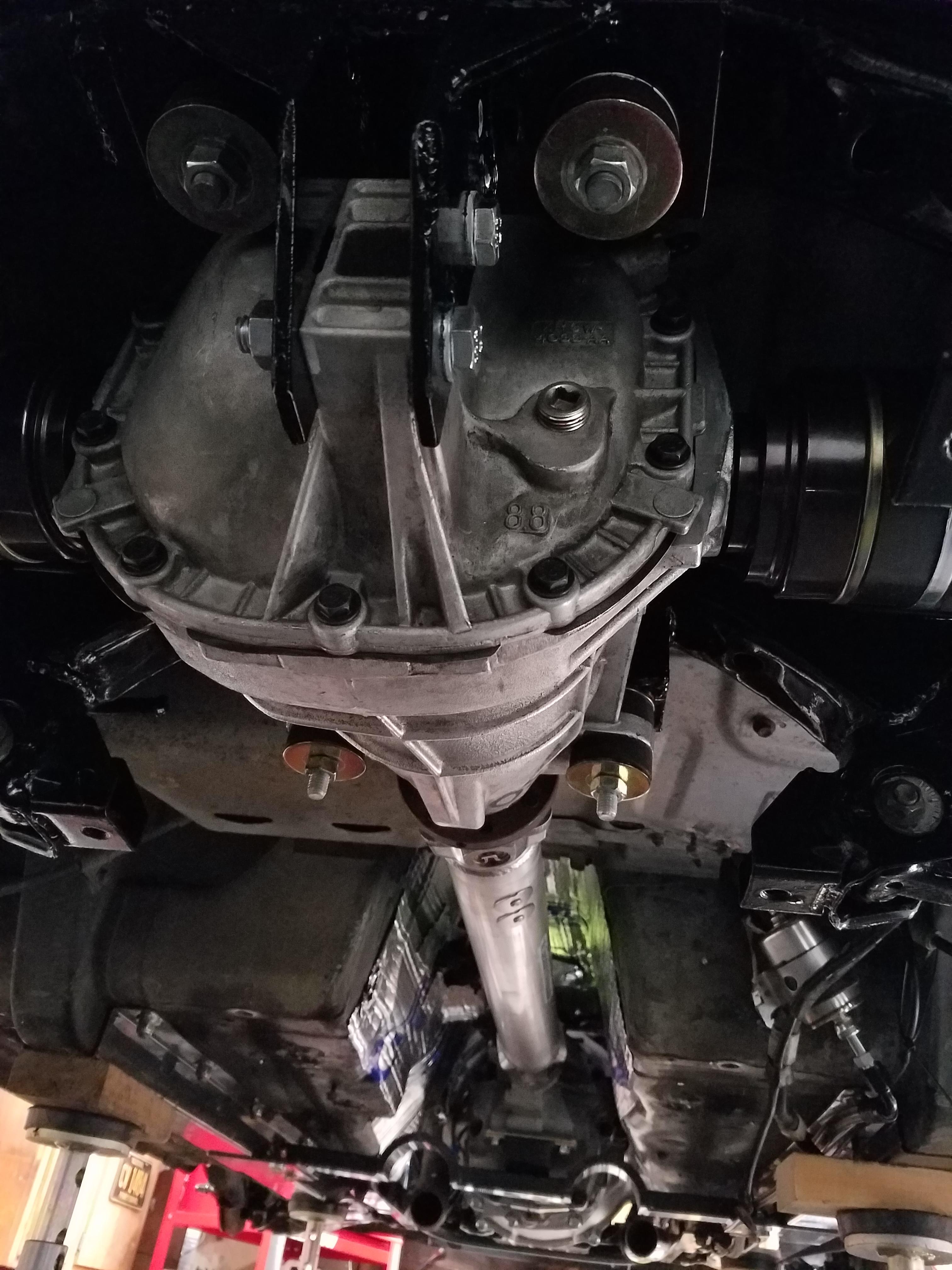 I had to clearance the aluminum heat shield under the gas tank a bit as it was less than an inch from the spinning driveshaft. Since the diff mounts are poly mounts, there shouldn't be much movement anyway.