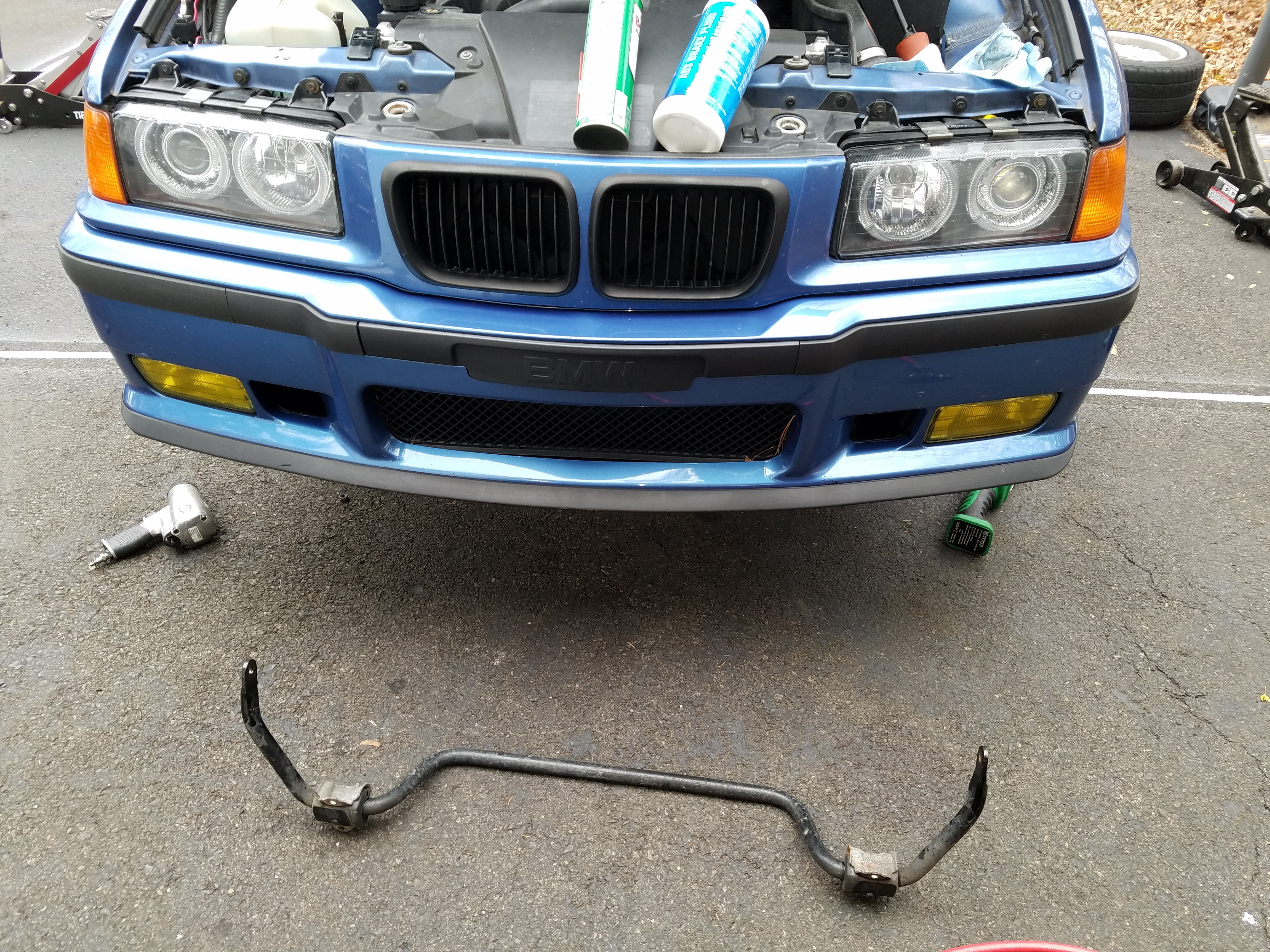 I read on a post here https://forum.miata.net/vb/showthread.php?t=404786 that you can use an E36 BMW M3 bar with success, because it has a bump on the middle of the bar that clears the engine perfectly. The width from link to link also lines up with the Miata. Pretty cool I thought. If it worked, I could also upgrade to one of the many E36 BMW front swaybar options out there if I wanted something stiffer.