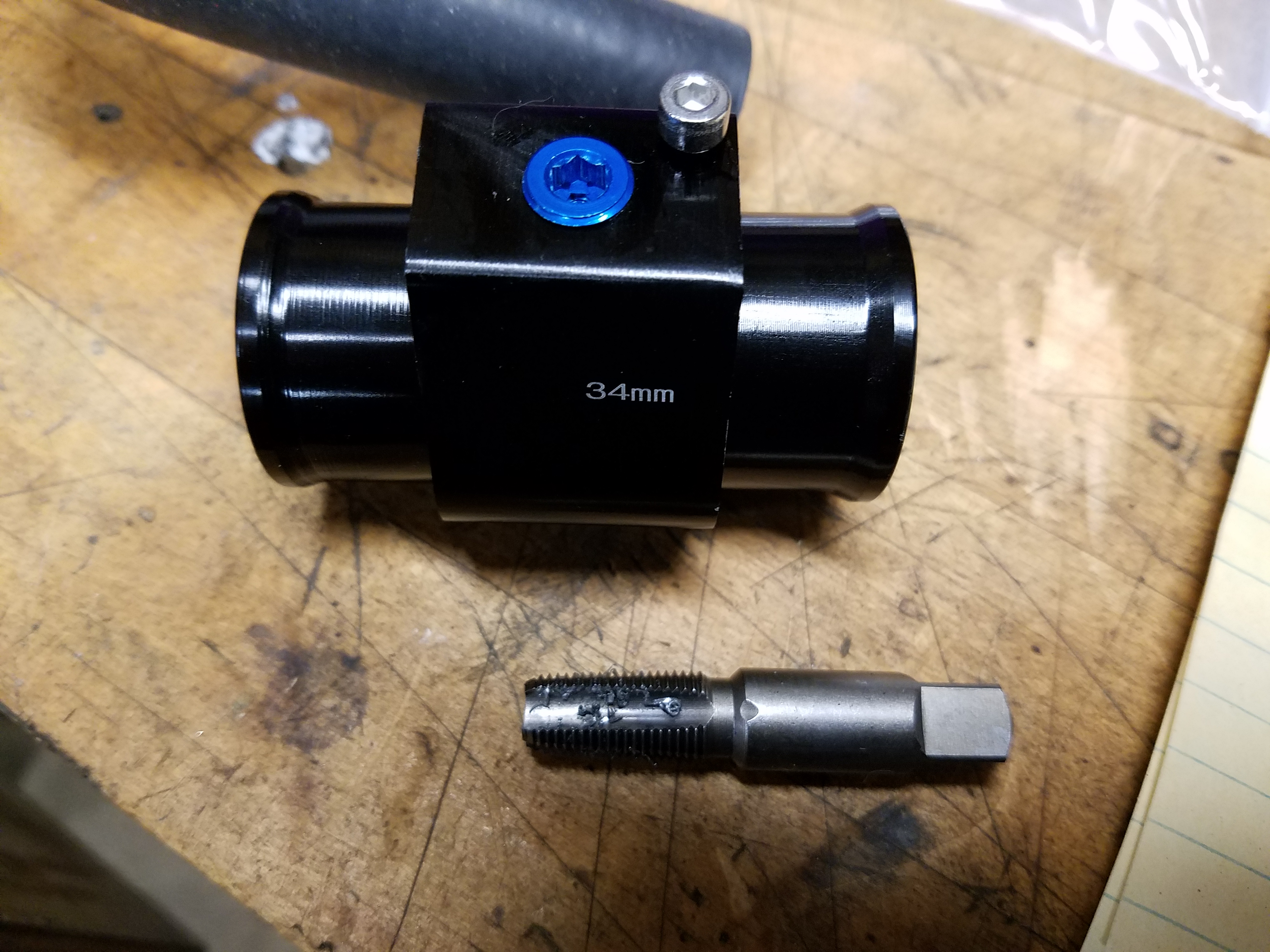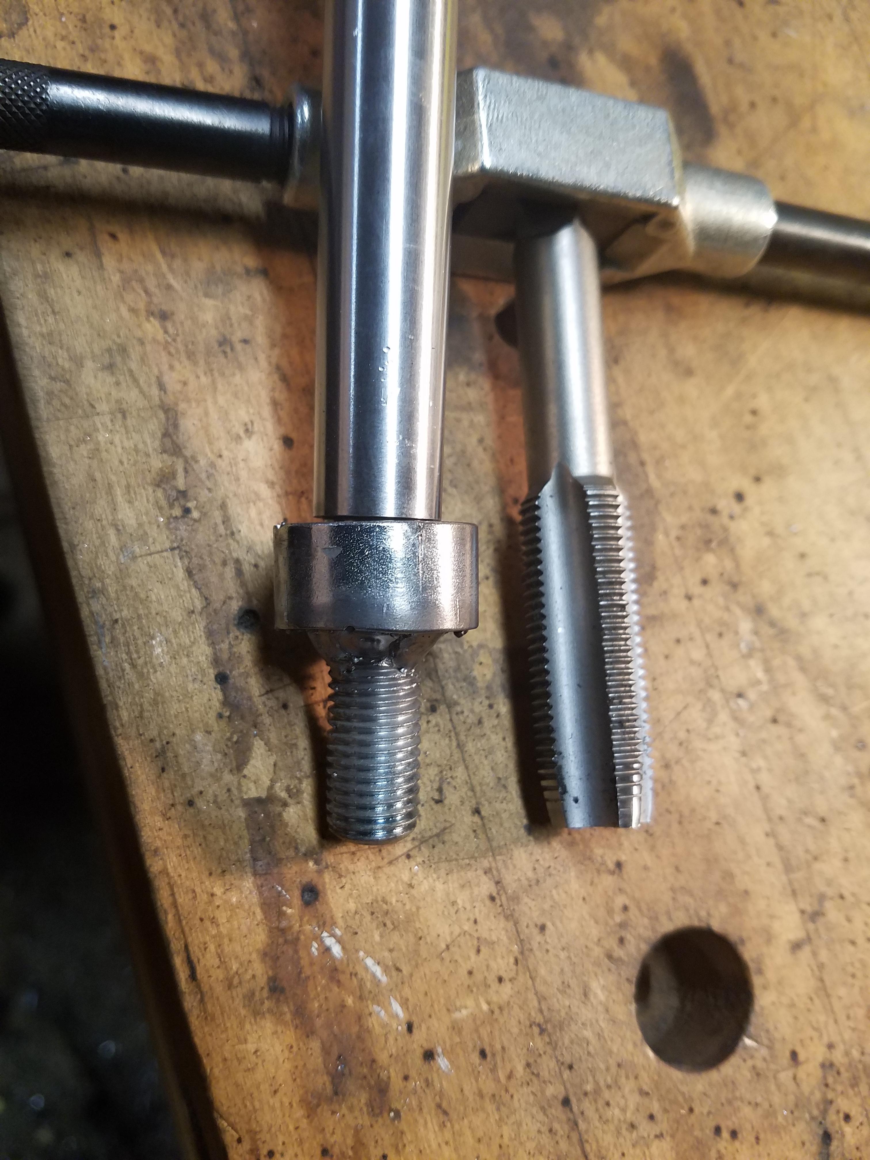 Because even little plugs can't be easy, I found out the threads were a little rough. After almost stripping one and ruining a plug, I picked up a cheap ebay NPT tap and cleaned them out. You can see the amount of trash the threads have.