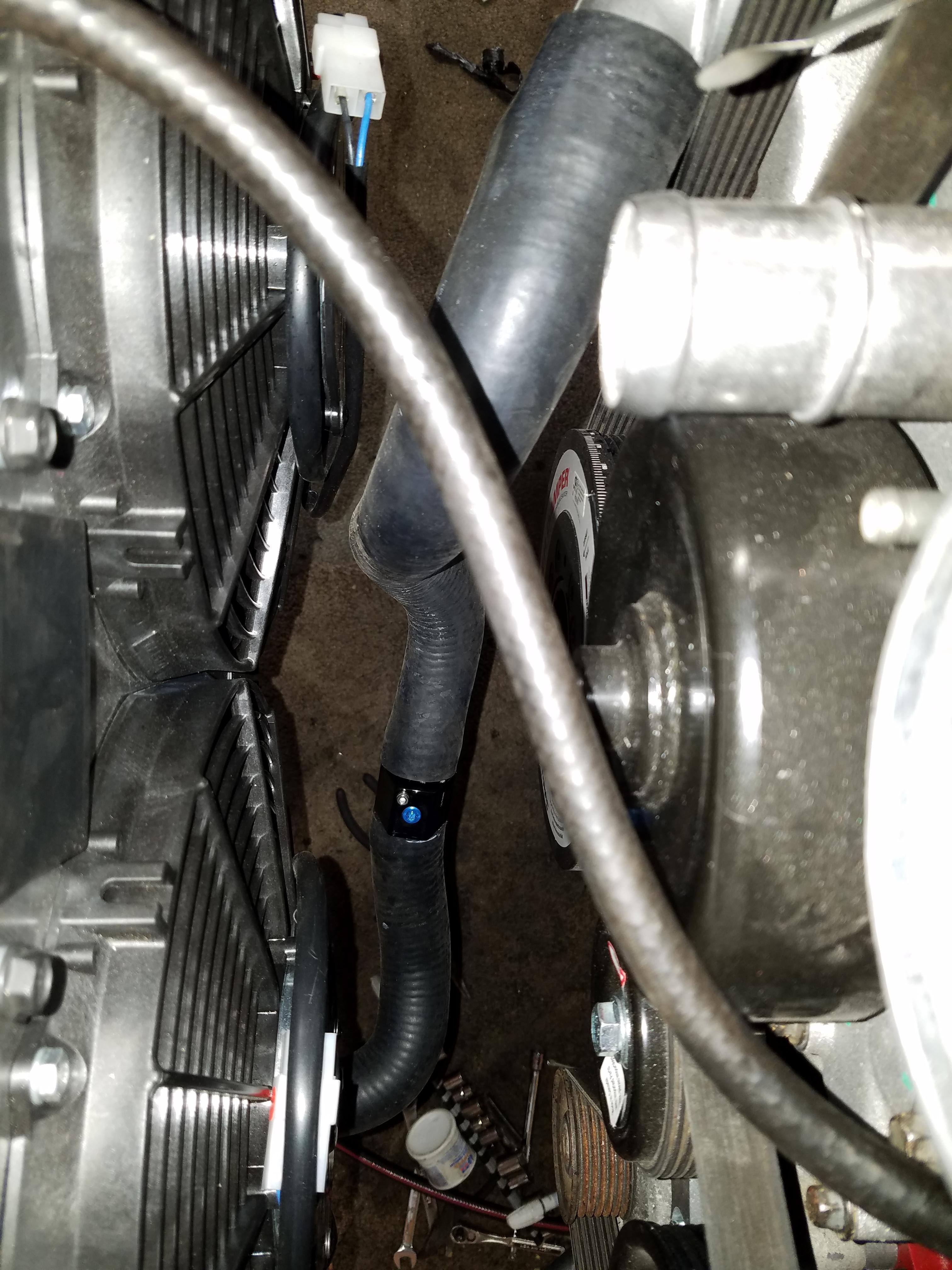 Using some info from these forums I figured both upper and lower rad hoses would need to be spliced together so I found these on Amazon https://www.amazon.com/gp/product/B018FY0Z84 You'll also need these little 1/8" NPT plugs in case you don't use the ports for anything else https://www.amazon.com/gp/product/B000CIM3GO