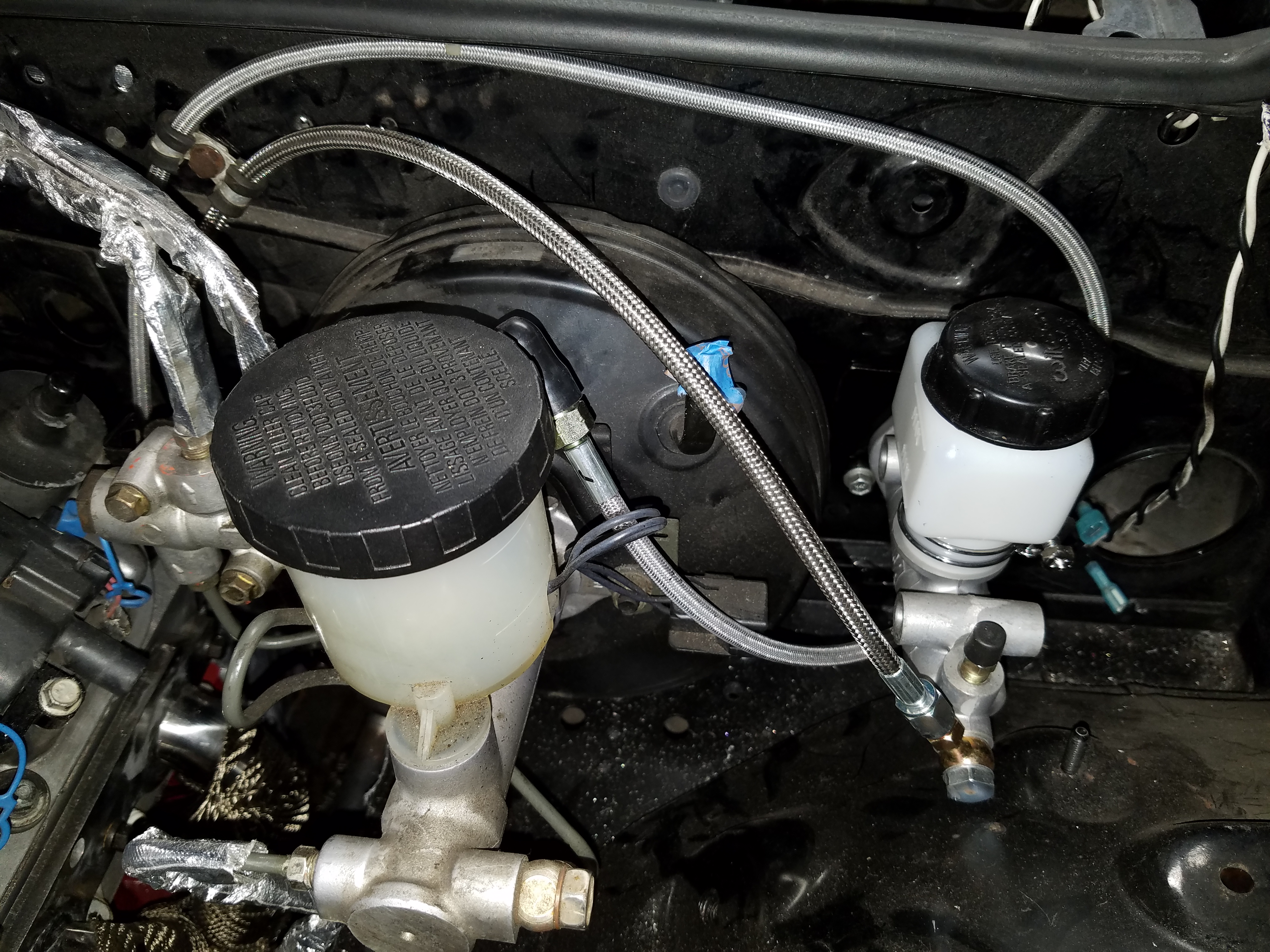Clutch line is routed and installed, with another conveniently placed bolt hole to keep the lines in place up against the firewall