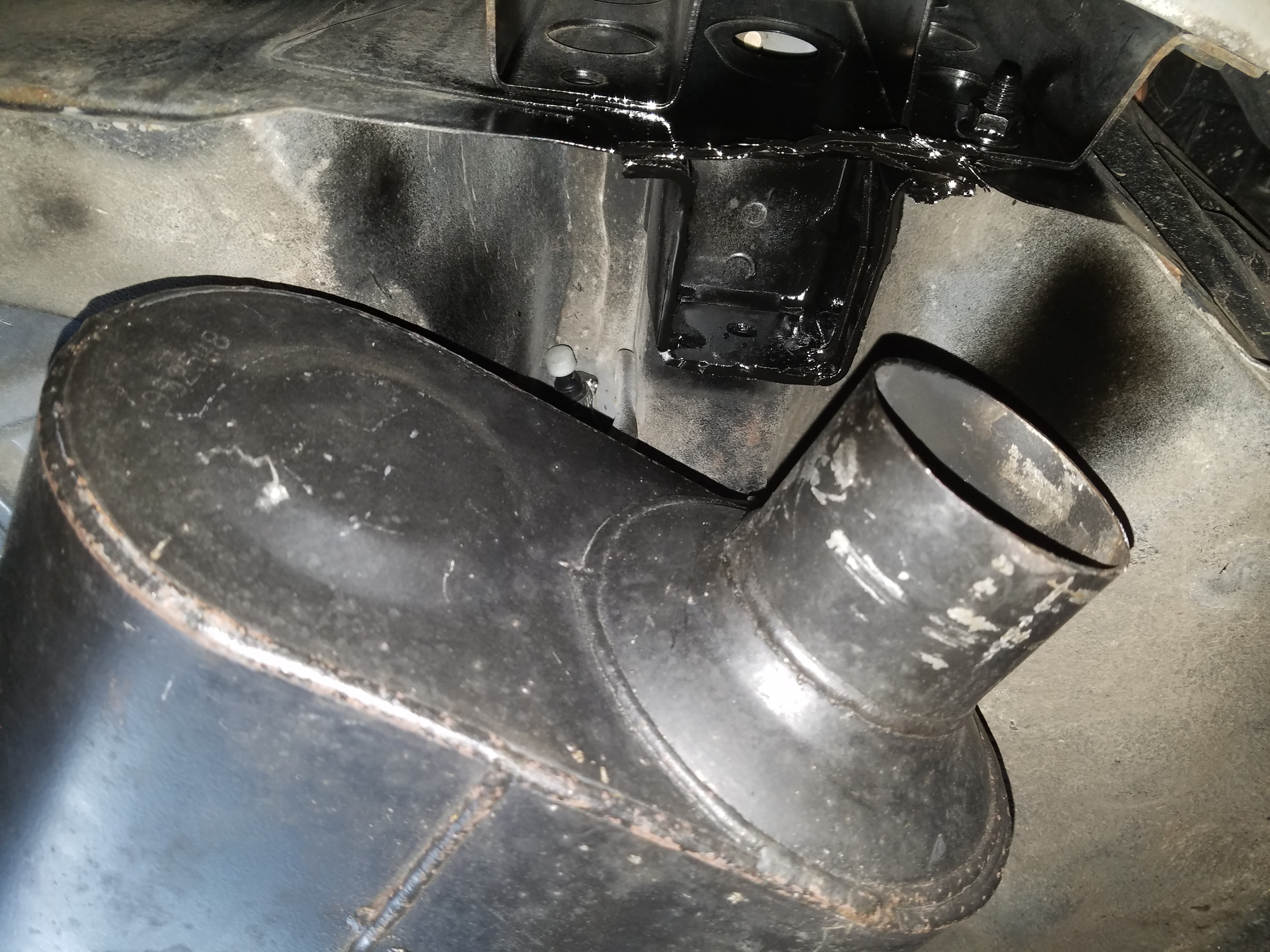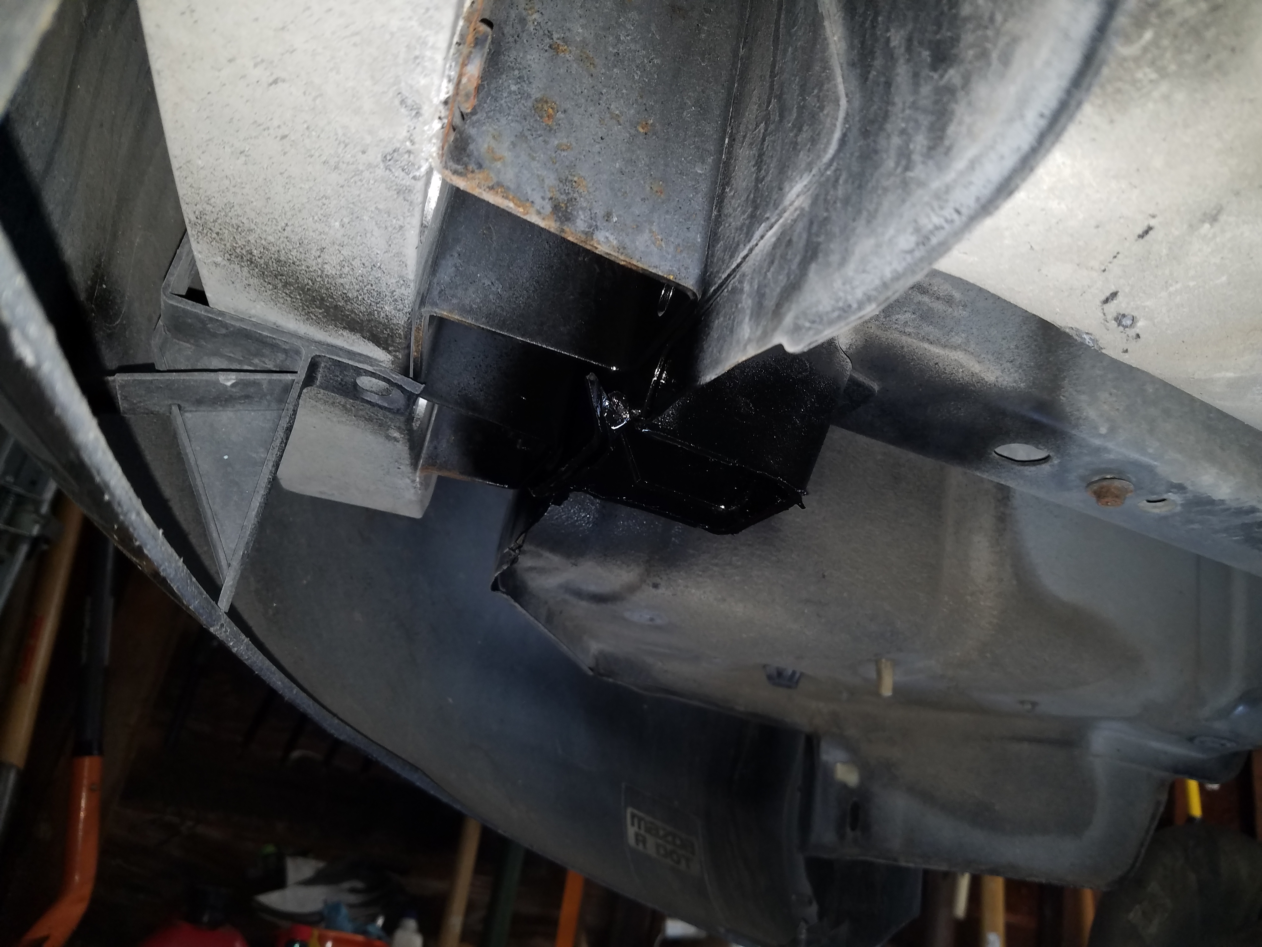 In order to make the muffler fit easily I decided to remove the rear tie down points. I'm hoping I don't regret this in the future, but you can always use the rear subframe to tie the car down. <<Update from the future>> Removing these will prevent you from using some trailer hitches that bolt in between these mounts. But Bethania Garage/Hard Dog sells a Class I hitch that mounts to the bumper mounts - this worked great for me.