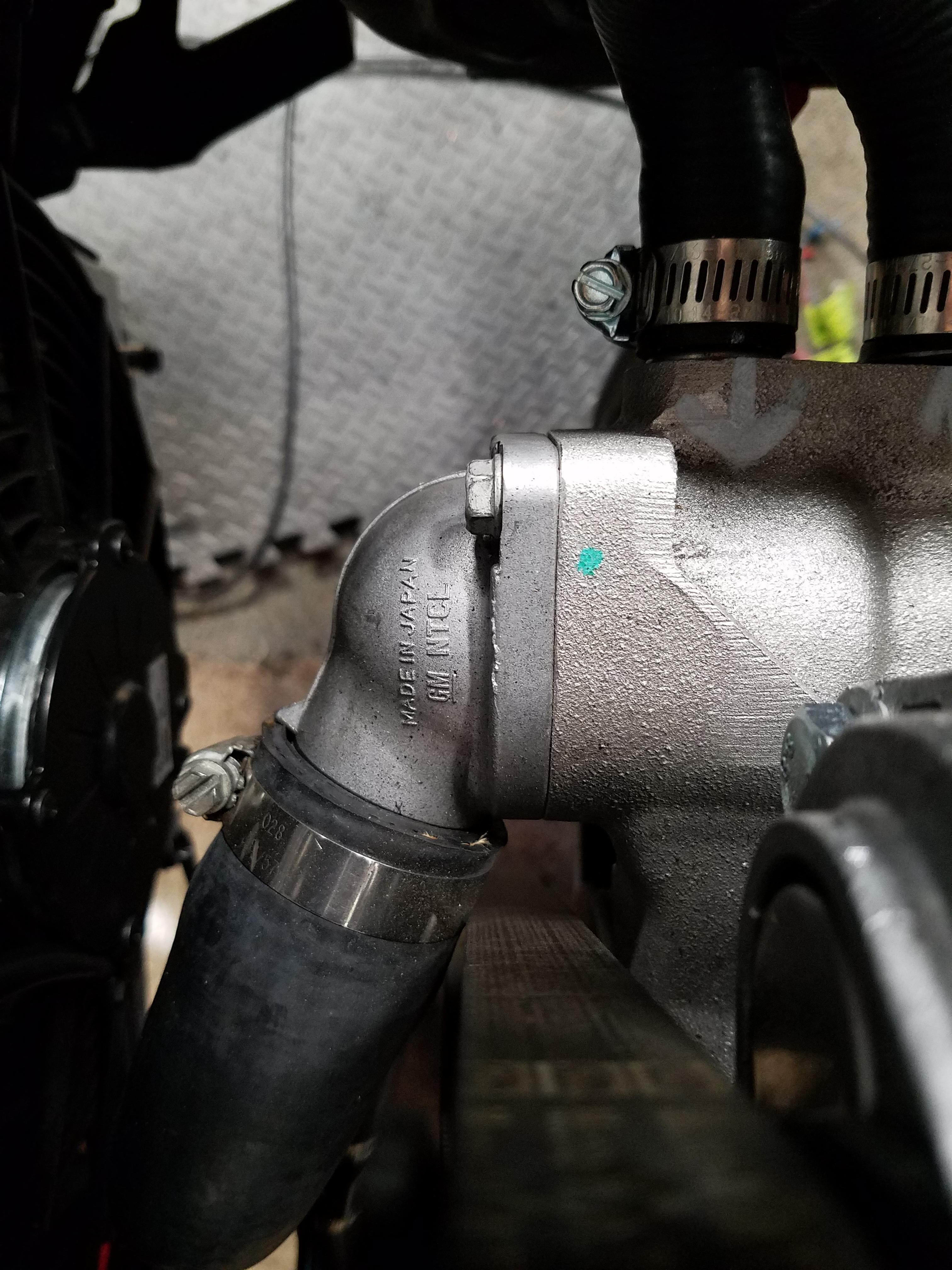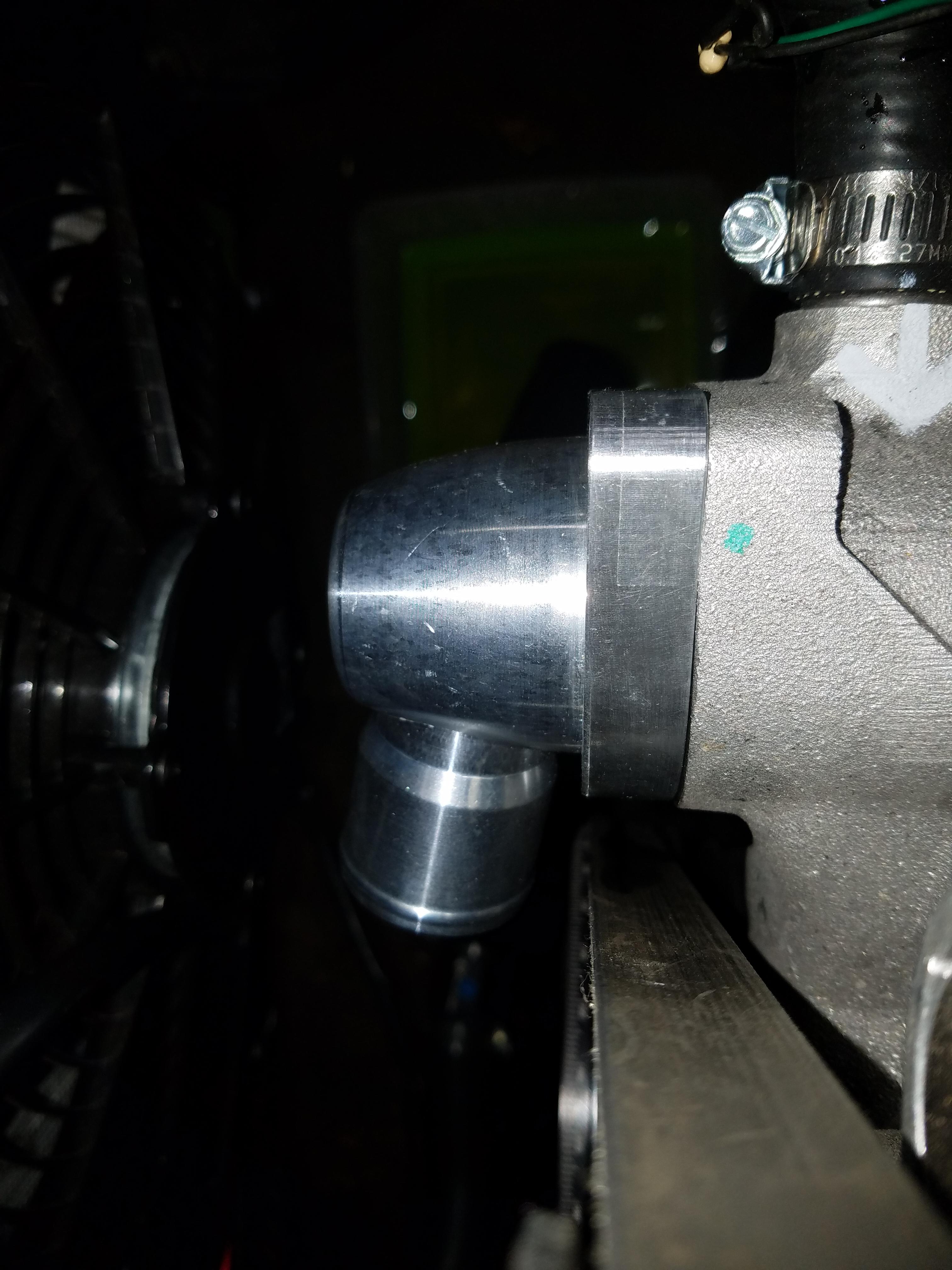 - The cooling system was literally being "pissy" with me. The coolant reservoir overflowed once the temp gaug hit 12 o'clock. Might be that the thermostat is not opening. What a shock to have finicky thermostat on a car that hasn't been run in awhile :vash: - I couldn't get my bluetooth OBD reader to work. So not sure if it was the reader (which was cheap) or if the port was not functioning. I got a CEL shortly after the car was running so I know the PCM is able to throw codes, and the dash CEL was working. :-) - Engine idle seemed high at 1000 or above. Need to verify using the OBD port that the PCM idle reading is matching the dash idle reading This was my clearance with the accessory belt and the existing thermostat housing flipped around towards the radiator. It ran fine with no rubbing but I knew this wasn't sustainable. Attachment 8705 So I had to go all out on this one. I could have just flipped the thermostat back to it's original location facing away from the radiator, and reconfigured my hoses. I liked the way my hoses were routed so I researched another thermostat housing that might give more clearance and went with this one: CSR 912LS1-1.5: 90° Swivel Thermostat Housing - Clear Chevy LS* | JEGS and the matching thermostat: JEGS Performance Products 53220: HP Thermostat Pre-LT1 GM, Ford, AMC | JEGS Yeah, I know, the price is a bit ridiculous. But as far as clearance it will do the job: Attachment 8706 |
