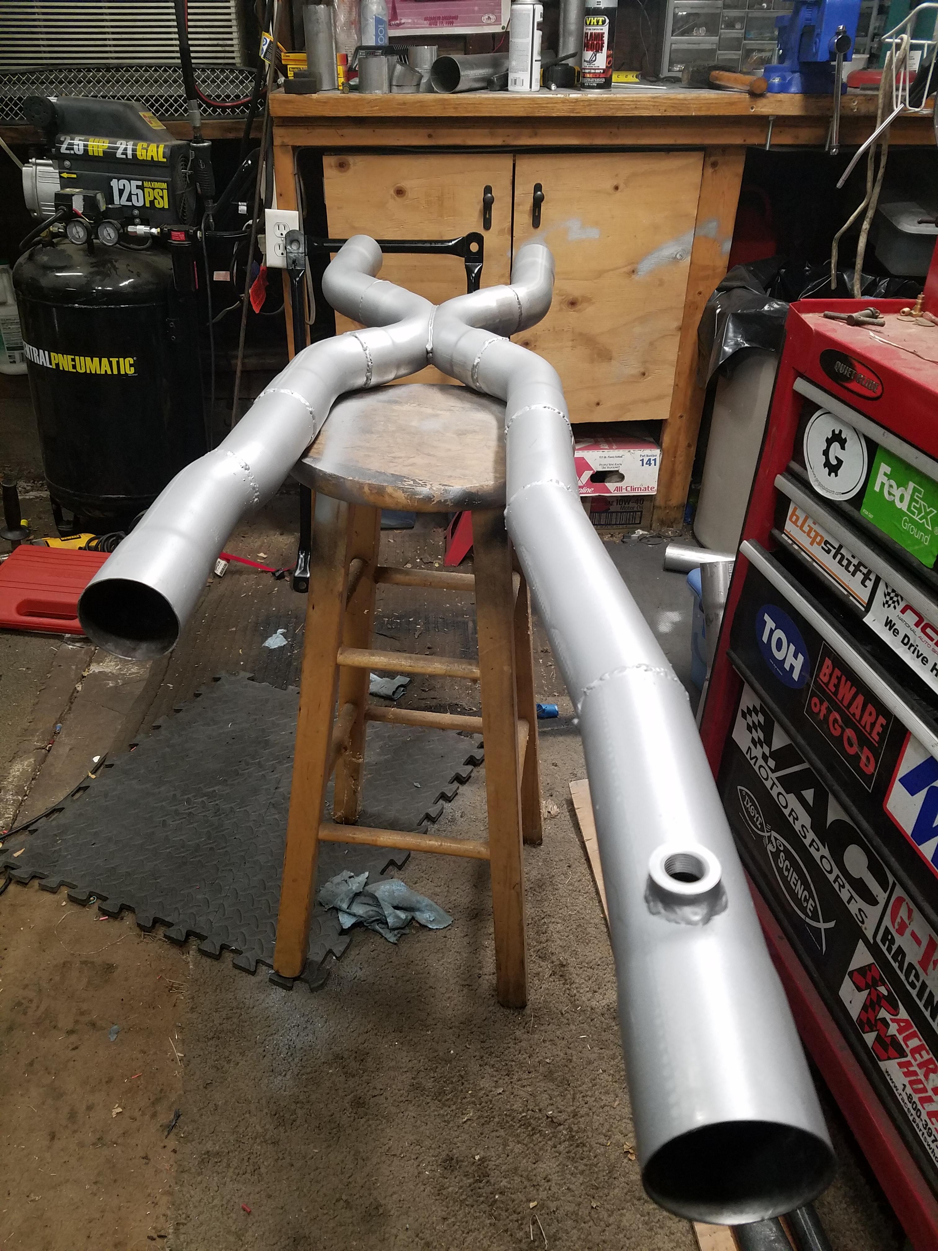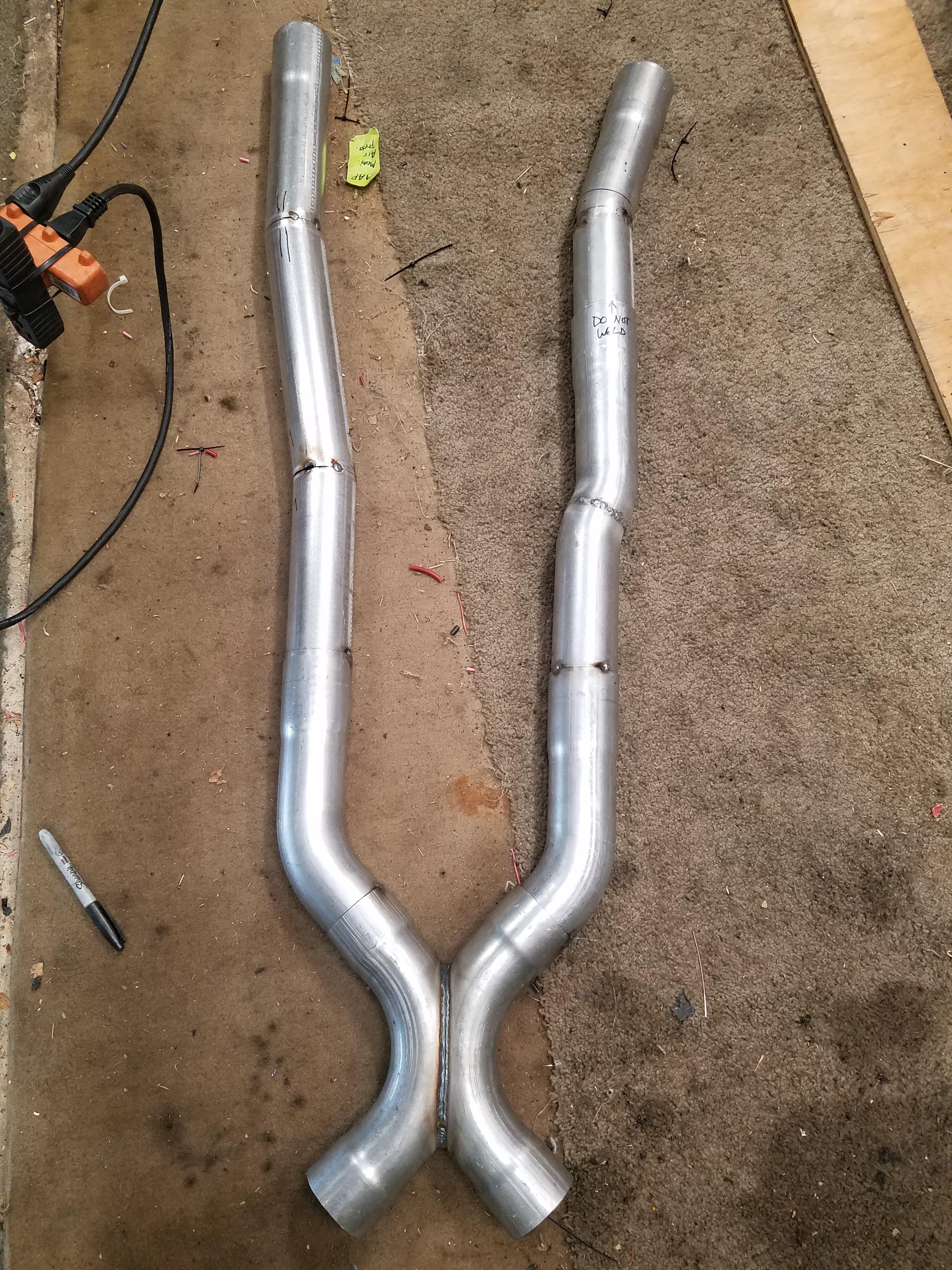 SUM-670146 https://www.summitracing.com/parts/SUM-670146 I also used their bungs: WLK-88103 Fitting, Bung, Weld-In, Oxygen Sensor, Female 18mm x 1.5, Steel, Each (Mfr. #: 88103) One comment on the crossover, I liked the crossover pipe that creates an X-shape, vs. those that are more like an H-shape. You can make fewer bends in my opinion with the X-pipe. Since each pipe comes off the X at a 45 degree angle, you just need another 45 degree pipe to make another pipe that will end up straight with the body of the car, front to back. Also you can just shorten your 45 degree pipe to adjust whether you want both pipes coming off the X-pipe to be closer or farther from each other. Hope that makes sense. |