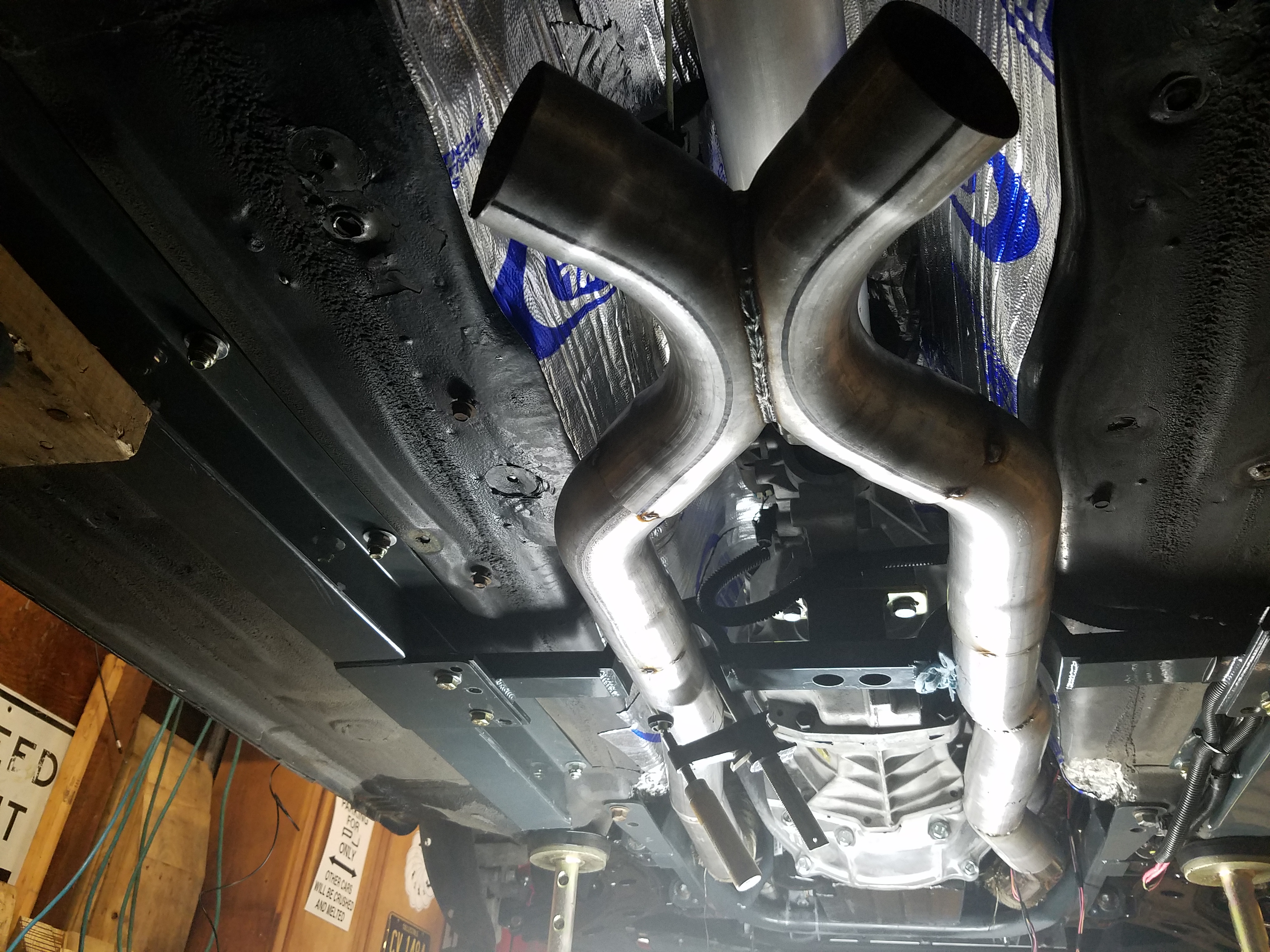 Here are some random pics of the exhaust hanging situation: Attachment 8707 Attachment 8708 Attachment 8709 Attachment 8710 Attachment 8711 Attachment 8712 Attachment 8713 Attachment 8714 Attachment 8715 Attachment 8712 Seems like I'm not getting a full seal on the exhaust clamps: Attachment 8717 It should look like this: Attachment 8718 The two exhaust hangers I have now are enough to hold the system in place happily for now, even with the mufflers installed. I'm using FlowMaster Super 40s in 2.5". I'm not going to do any muffler hangers for now until I decide what I want to use and will then weld in some hangers using the stock locations where possible. |