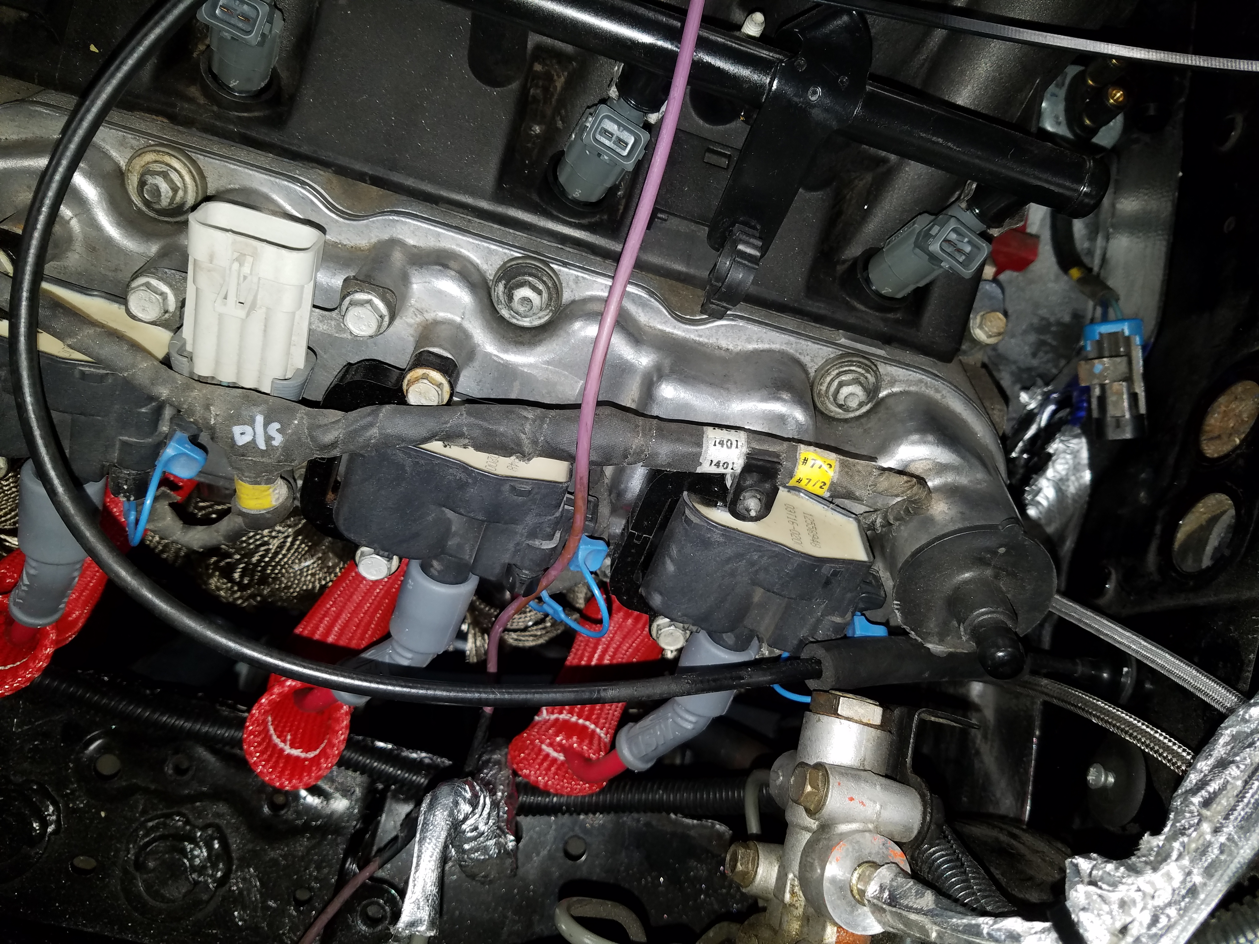 I was able to turn the engine over a few nights ago. At first I had nothing when I turned the key but I ultimately traced the problem to bad connection at the starter solenoid. I used the LS1 connector, but it seems the metal contact inside the connector was slighly bent out of shape, and was not making contact with the single pin on the solenoid. It's a tight fit with the oil pan dipstick there. I have a shorter starter than stock to clear the headers, so I'm wonddering if this tight clearance is normal. If the starter was 1/4" or more longer at the solenoid, I'd need to move the dipstick to get the starter solenoid connection plugged in. Other than that, I also bypassed the clutch interlock so that I could turn it over w/out sitting in the car - since I don't have seats installed. I verified there were no strange noises from the engine as I cranked it, as I had not been able to do this in the almost year I've had it. No blown fuses or strange smells, etc. I decided to fill up the engine with various fluids.