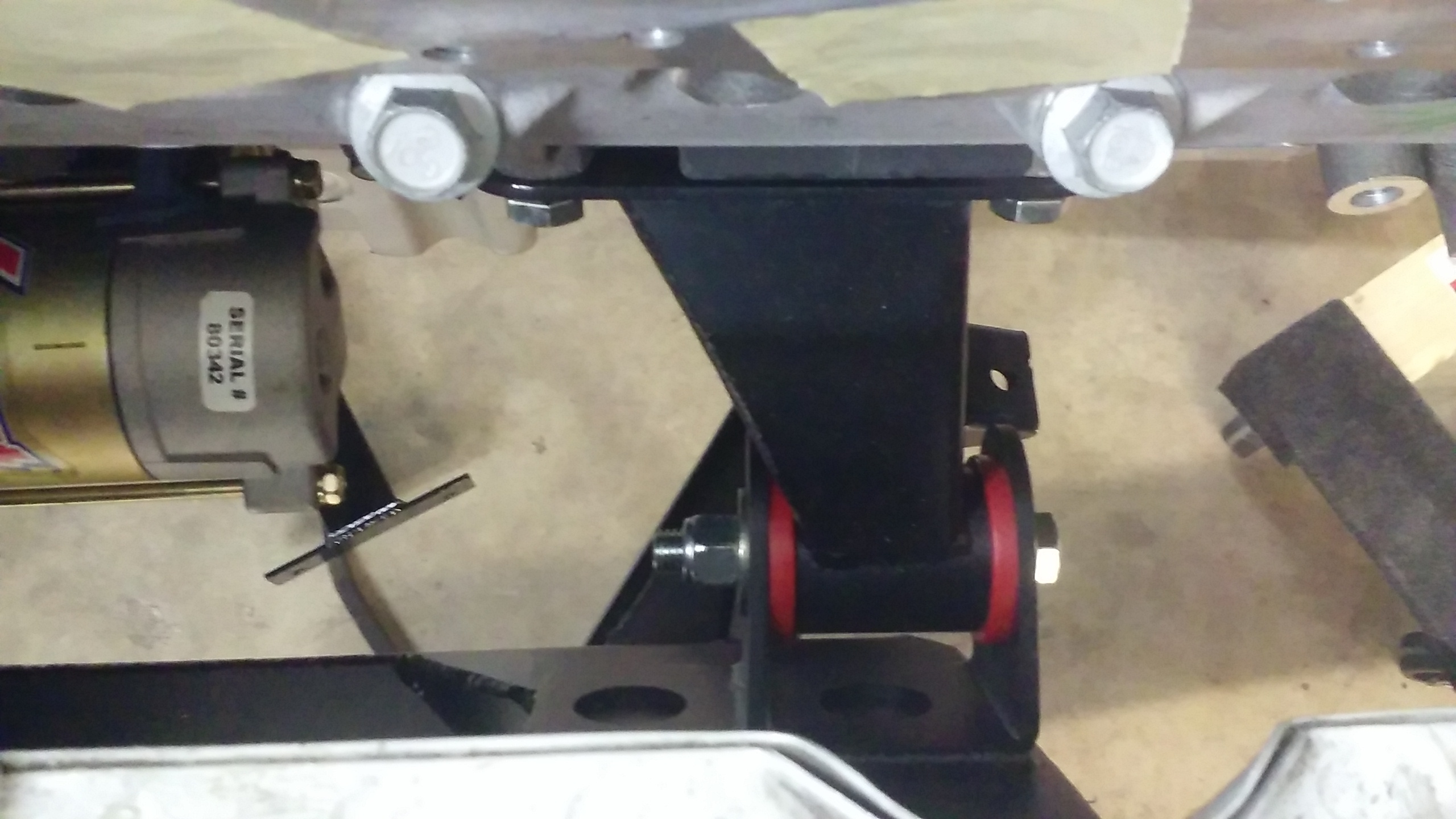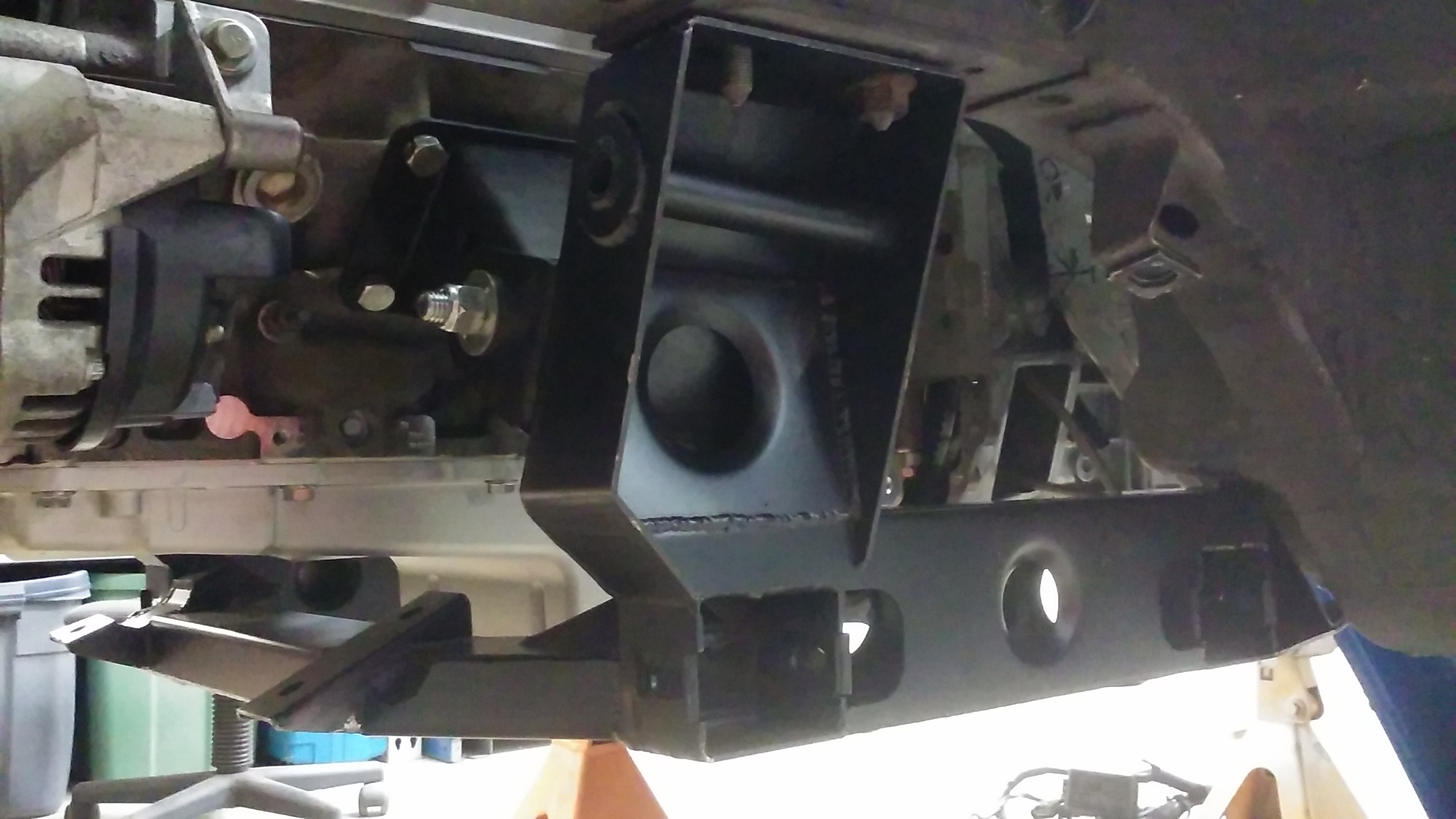 This was the first version of my diff mount before I realized I needed to lower it a bit to clear the rear yolk. I've already built a new rear mount, but for the front one I just added spacers. The rear mount is on polyurethane bushings.