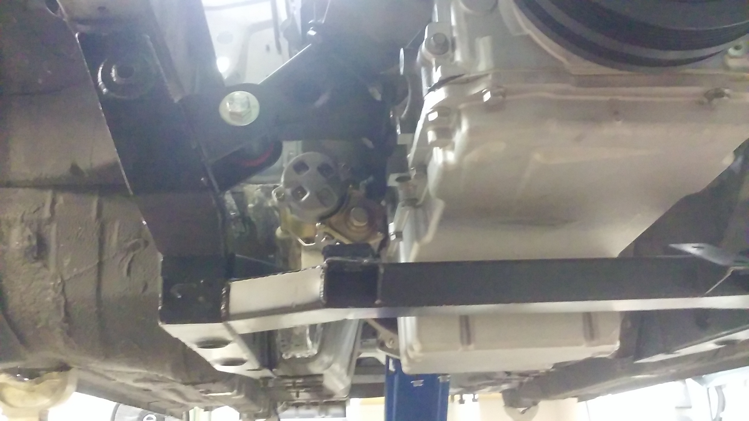 I built a trans mount... Its very simple but was a bit of a pain to get the angles just right. I tied it into reinforced area where the seats mount. Its very solid. I may also hang the exhaust here.